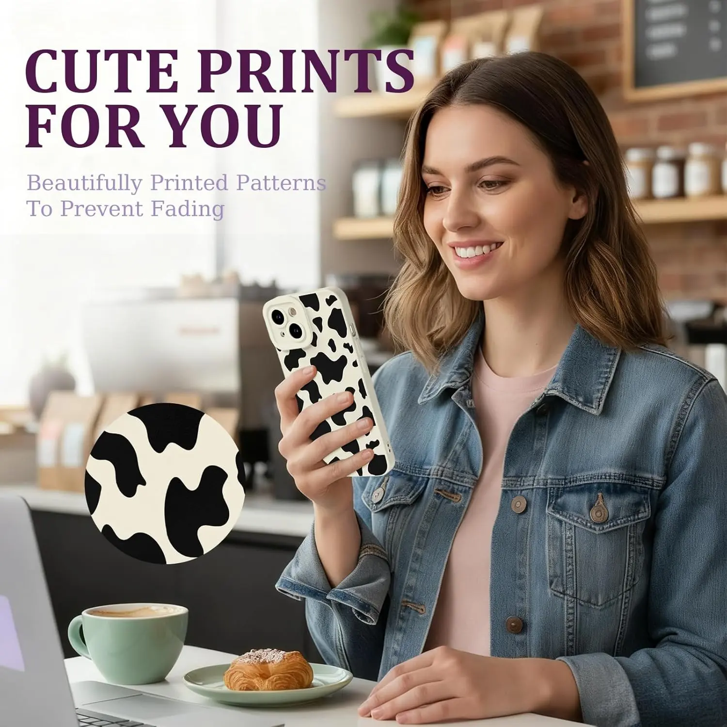 Case Compatible with iPhone 13, Cute Pretty Print Protective Silicone Case for Girls Women, Ultra-Thin Shockproof Soft Girly Phone Cover for iPhone 13 - Cow Print