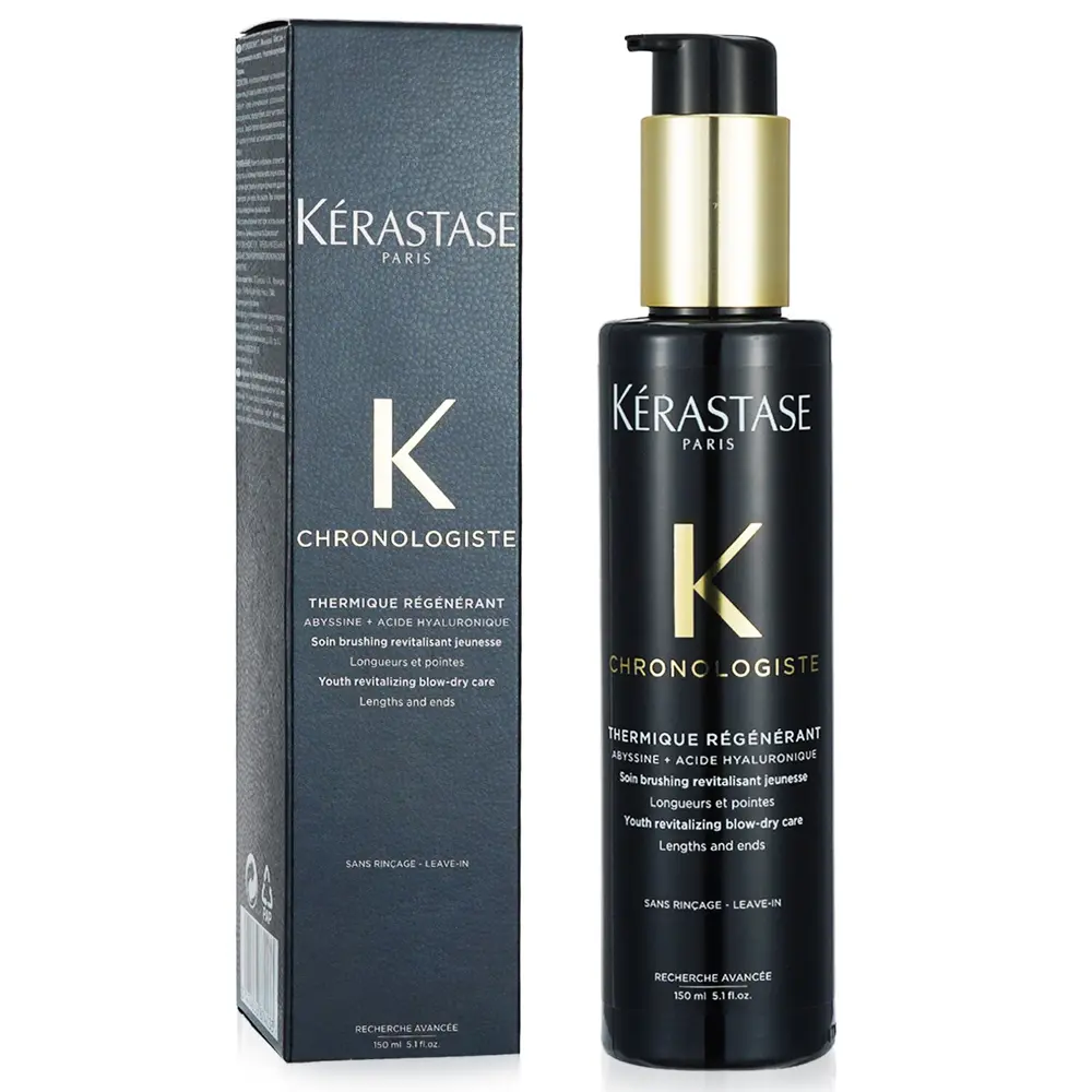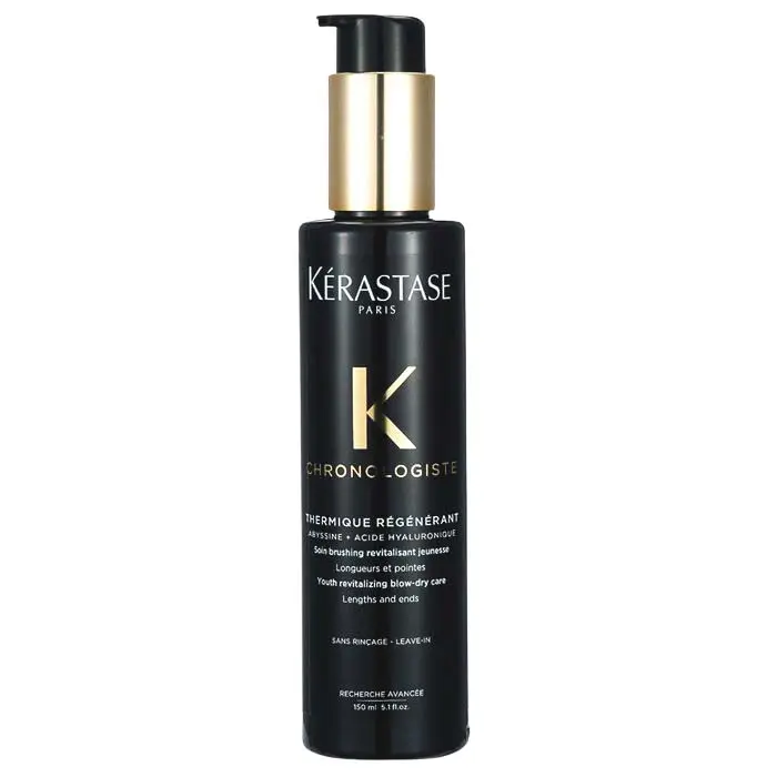 Chronologiste Thermique Regenerant Heat Protectant is a sophisticated leavein designed to elevate your hair care routine. Infused with Hyaluronic Acid, Abyssine, and Vitamin E, this primer offers exceptional protection against heat damage up to 230°C (450 degrees), making it the perfect companion for your styling tools. With 24hour frizz control, it effortlessly manages even the most unruly hair in humid conditions, ensuring a polished look. This lightweight formula smooths cuticles and enhances hair elasticity, leaving your locks revitalized and vivacious. It lends a soft, youthful texture to each strand, adding a touch of elegance to your hairstyle. Through every application, it transforms the styling experience, keeping hair irresistibly smooth and protected.