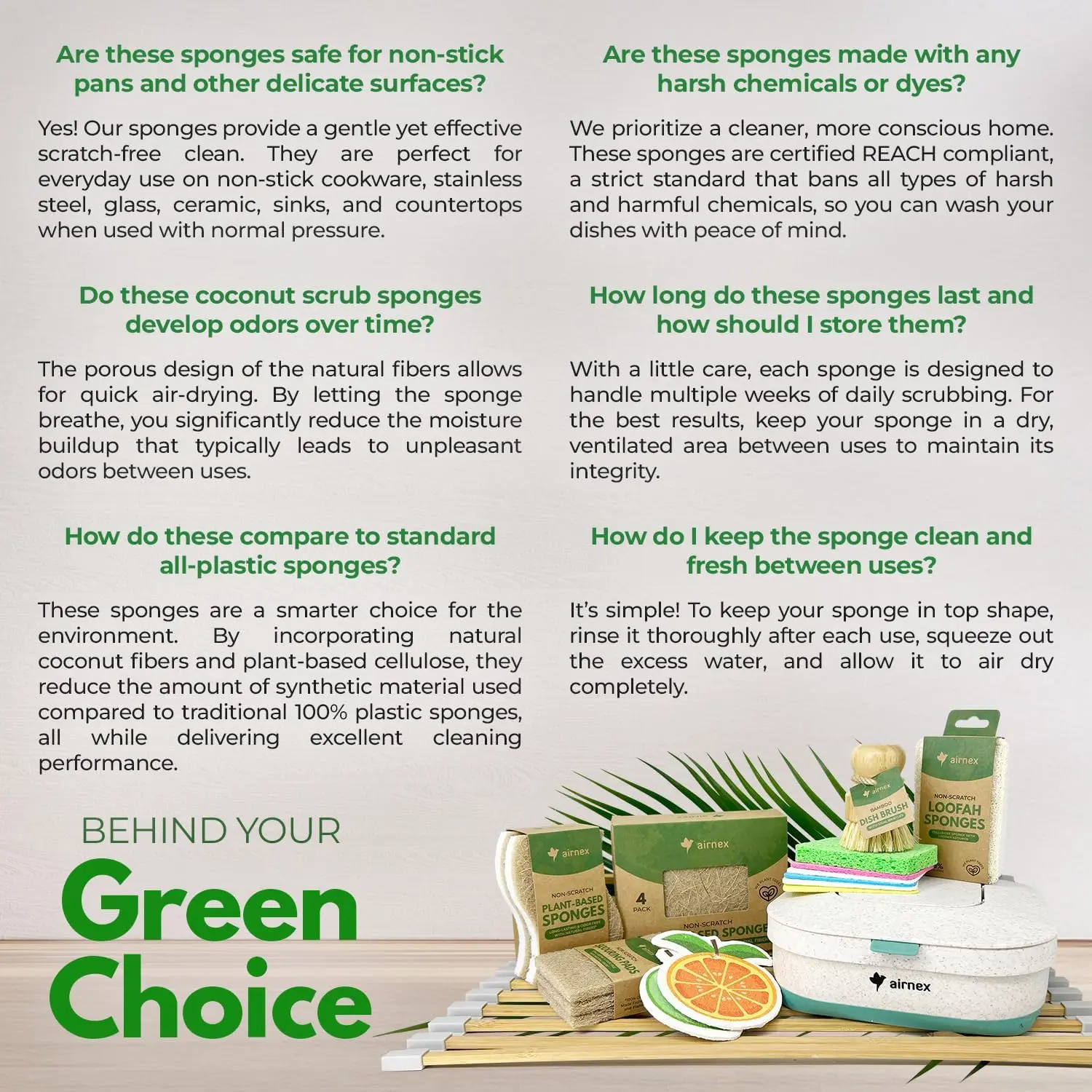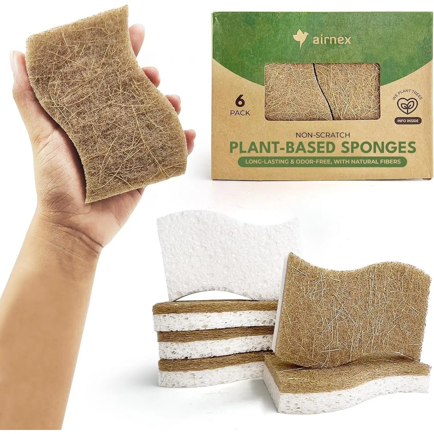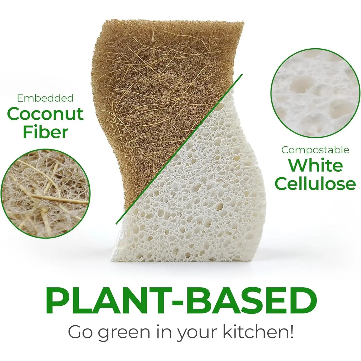 Natural Kitchen Sponges (12 Pack) - Biodegradable Cellulose & Coconut Scrubber Dish Sponges for Kitchen - Eco-Friendly, Non Scratch, Compostable, Non Toxic S-Shaped Natural Sponges for Dishes