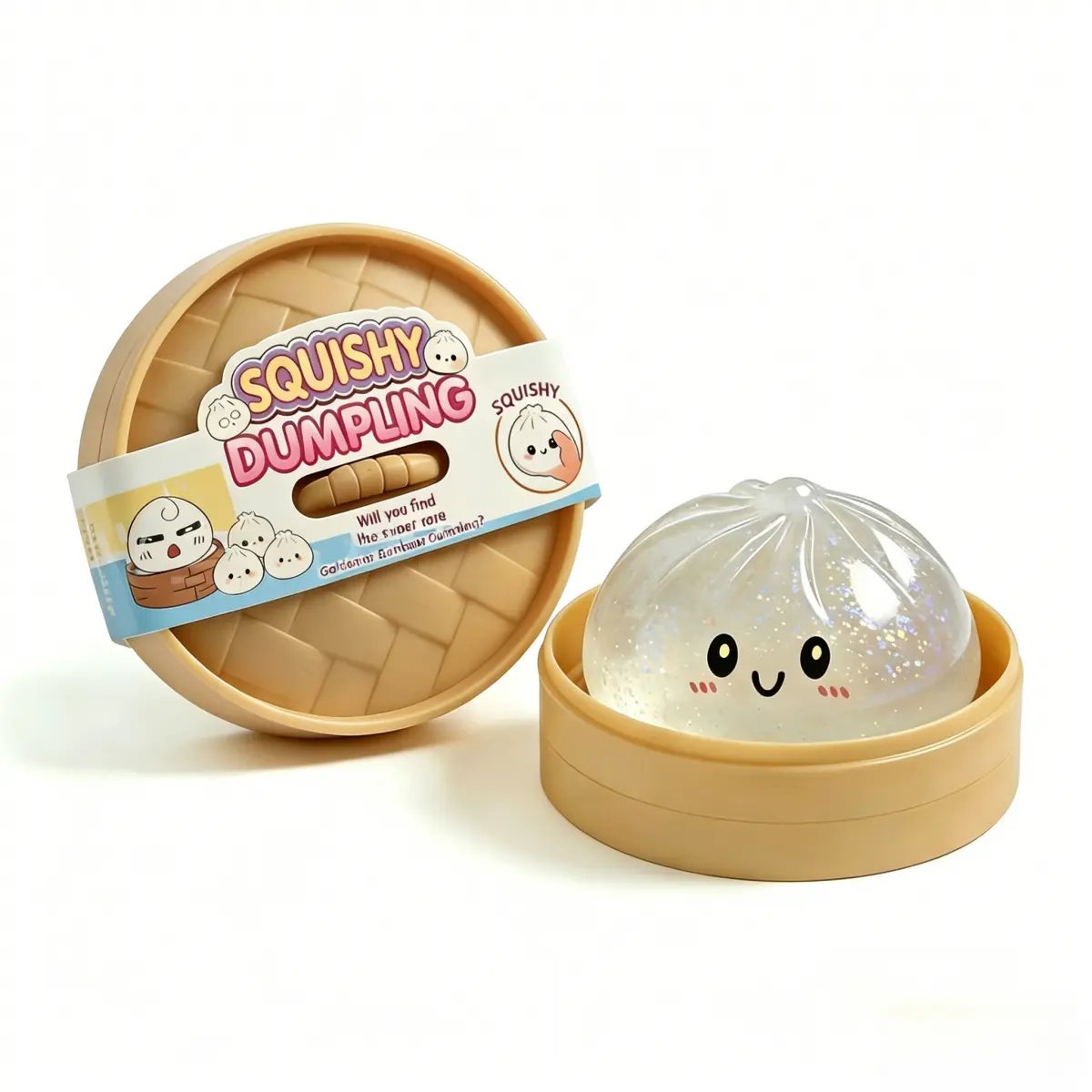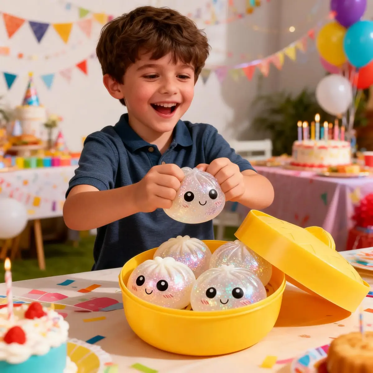 Giant Glitter Dumpling Squishy - Mega Rainbow Soft Squeeze Toy, Cute Anxiety Relief Fidget with Steamer Box, Decompression Dough for Adults & Kids