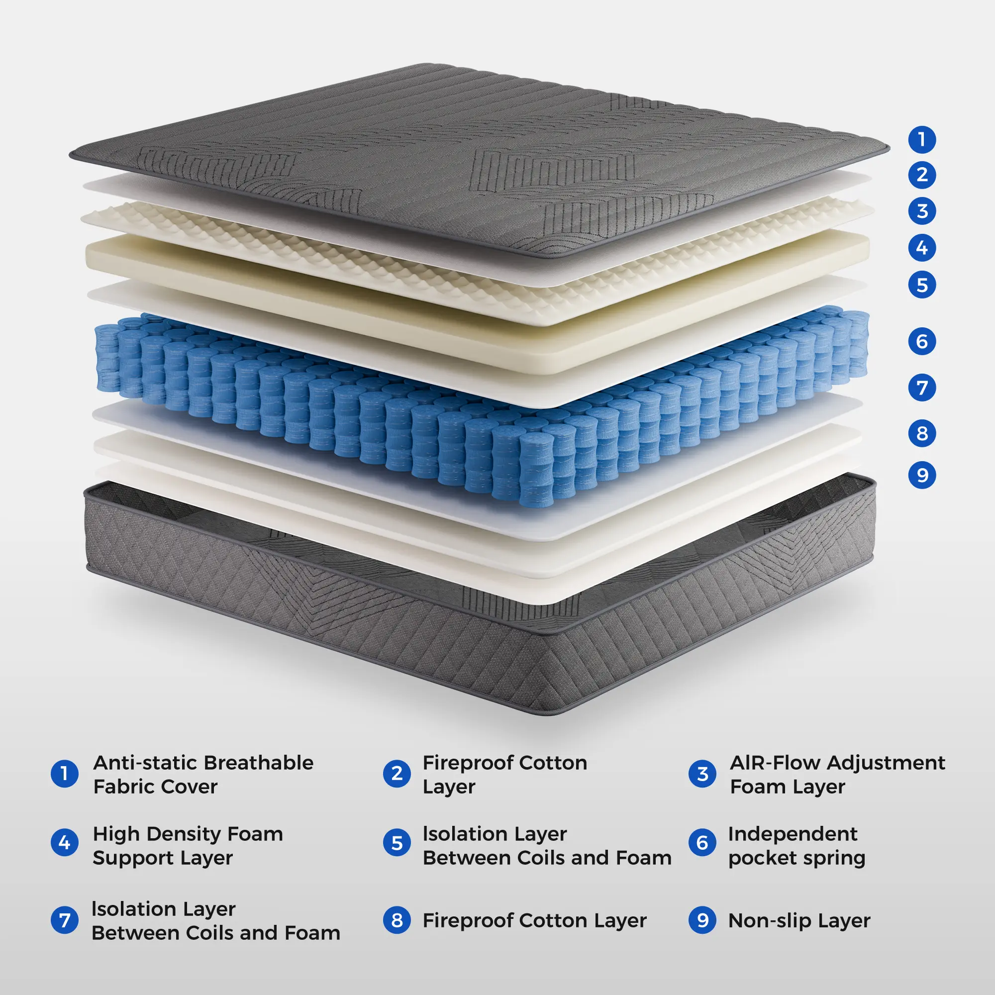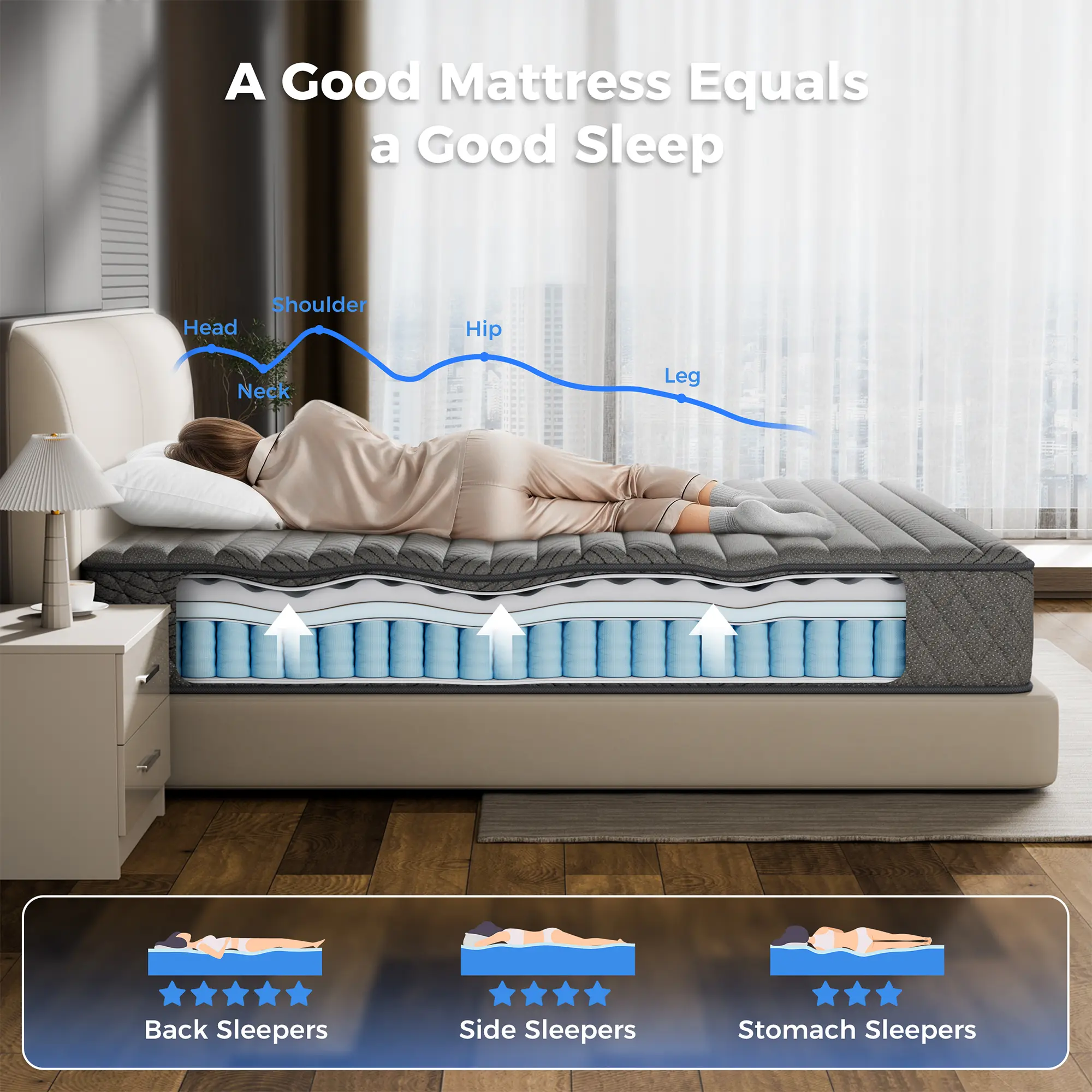 Enhanced Responsive Support - The hybrid mattress uses more elastic materials, with Alloy Steel Material Springs and additional lumbar foam working together to provide stronger support. This helps prevent the hips and lower back from sinking, keeping the spine in proper alignment.(The alloy steel springs offer a longer lifespan and are more resistant to rust. The thicker springs (23.5% more) also make it significantly heavier than a similarly sized hybrid mattress, requiring two people to lift it.)