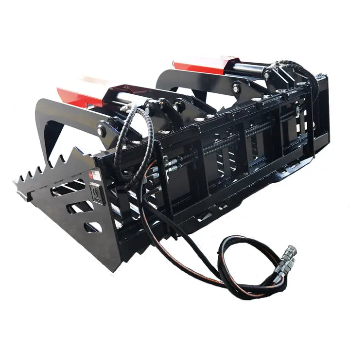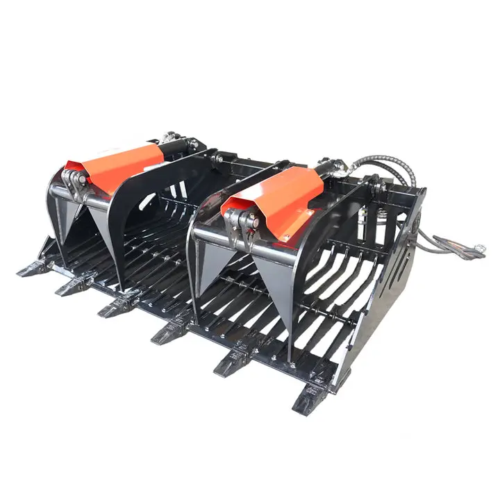 The Skid Steer Rock Grapple Bucket is an extremely versatile attachment. Grapple Buckets combine the sifting prowess of Rock Buckets with strong twin cylinder, dual independent grapple arms. Pick up rocks, clean up job-sites, clear brush, dress yards, carry logs and firewood. With 3/8" bucket tines, 1/2" grapple tines, enclosed cylinders and grease fitting on pivot points this grapple bucket is ready for the hard work.
