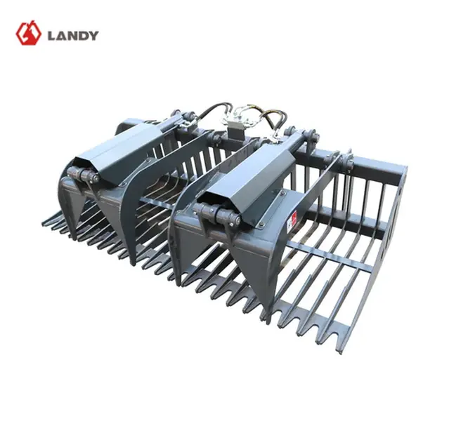 The Skid Steer Rock Grapple Bucket is an extremely versatile attachment.