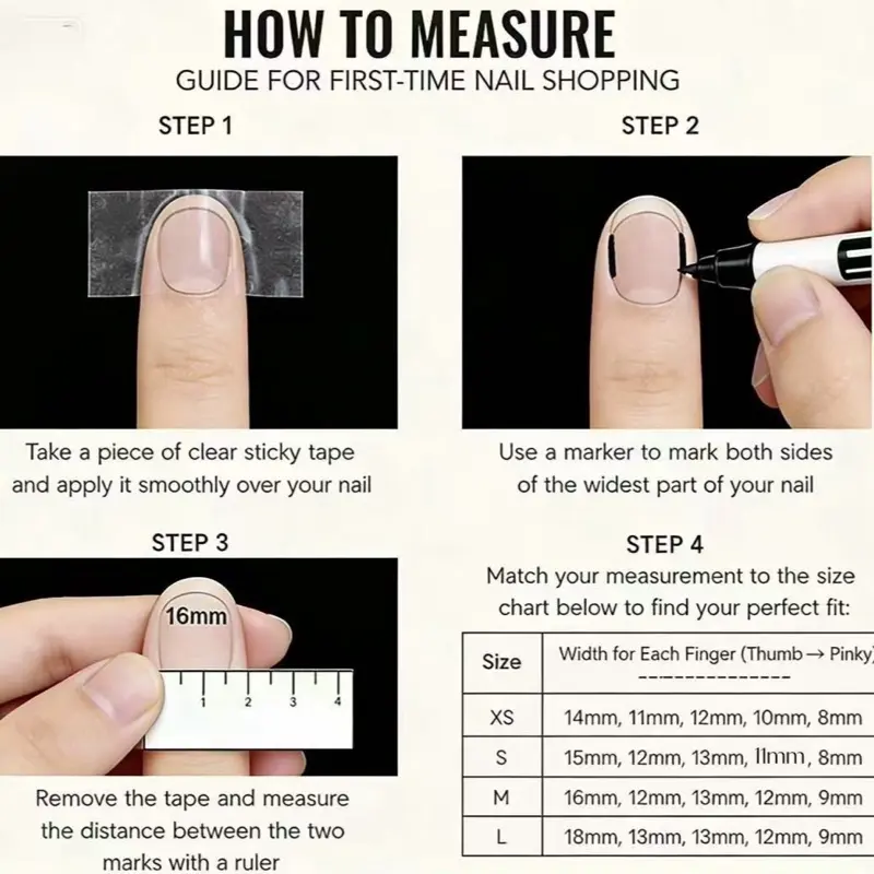 • Please measure your nail size before ordering to ensure a perfect fit.