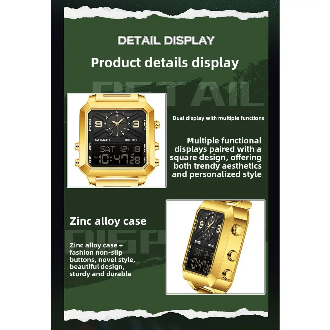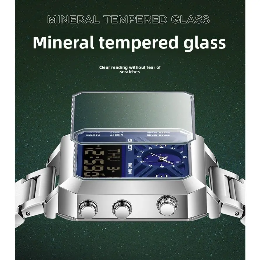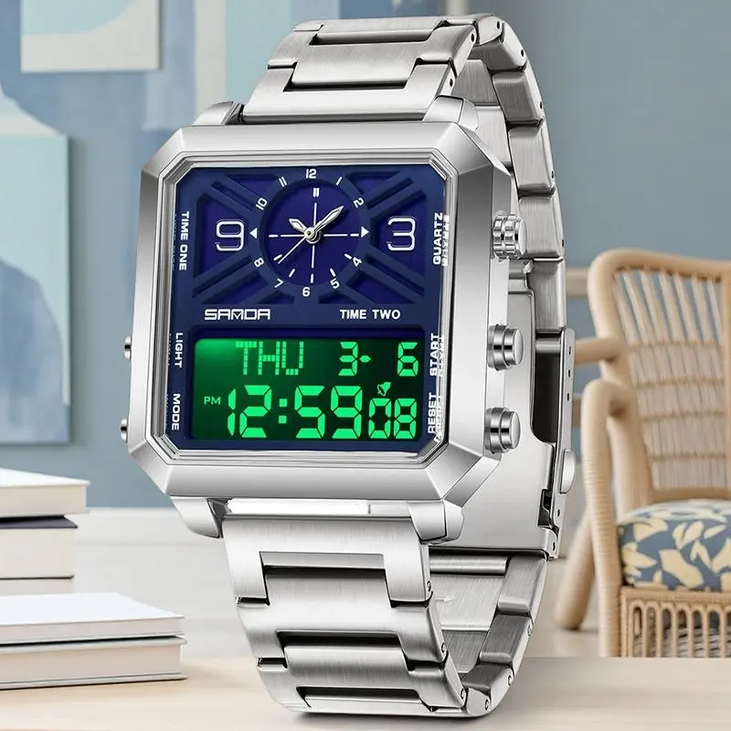 "Women’s Steel Band Watch with Dual Display, Multi‑Function Countdown & Everyday Water Resistance"