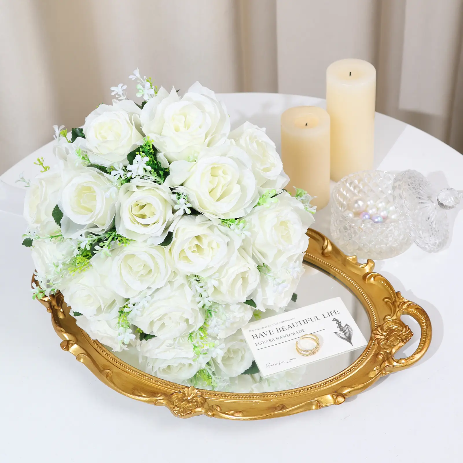 Wedding Bouquets for Bride Bridesmaid,White Champagne Roses Flowers for Bride Bridesmaid,for Home Wedding Party Ornaments Lifelike Fake Plant Fruit, Church Decoration, Ceremony, Anniversary