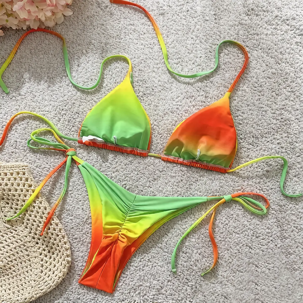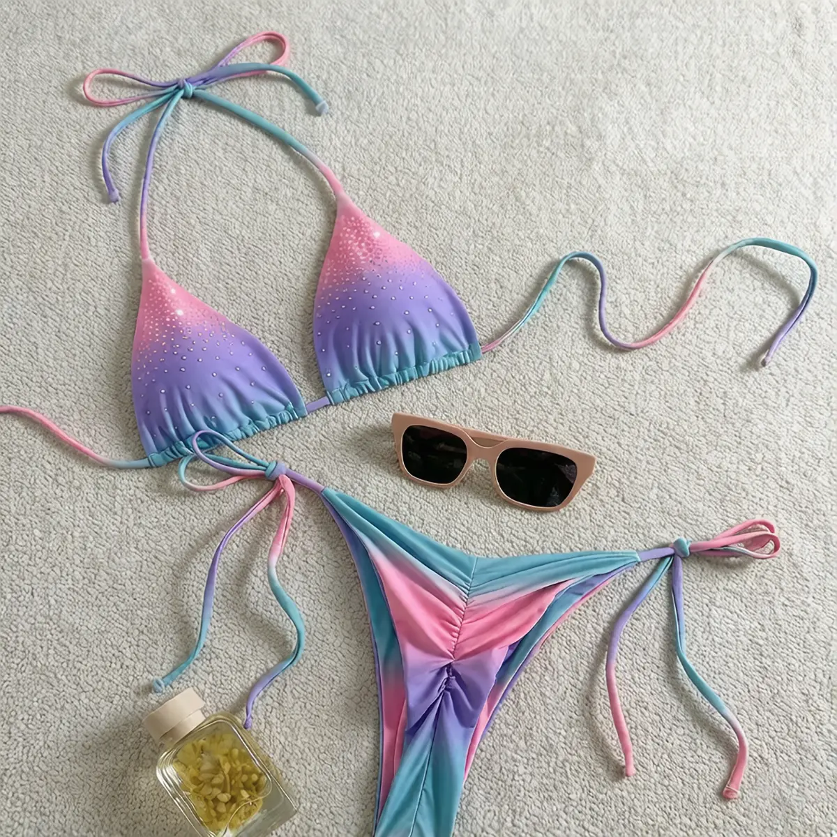 Crafted from buttery-soft, skin-friendly 4-way stretch fabric, this bikini set delivers unbeatable all-day comfort with its quick-drying, breathable, and feather-light texture.The silky-smooth material is gentle on sensitive skin, free of chafing and irritation, while the high-elasticity design hugs your curves perfectly without tightness or restriction, letting you move freely from beach to pool.