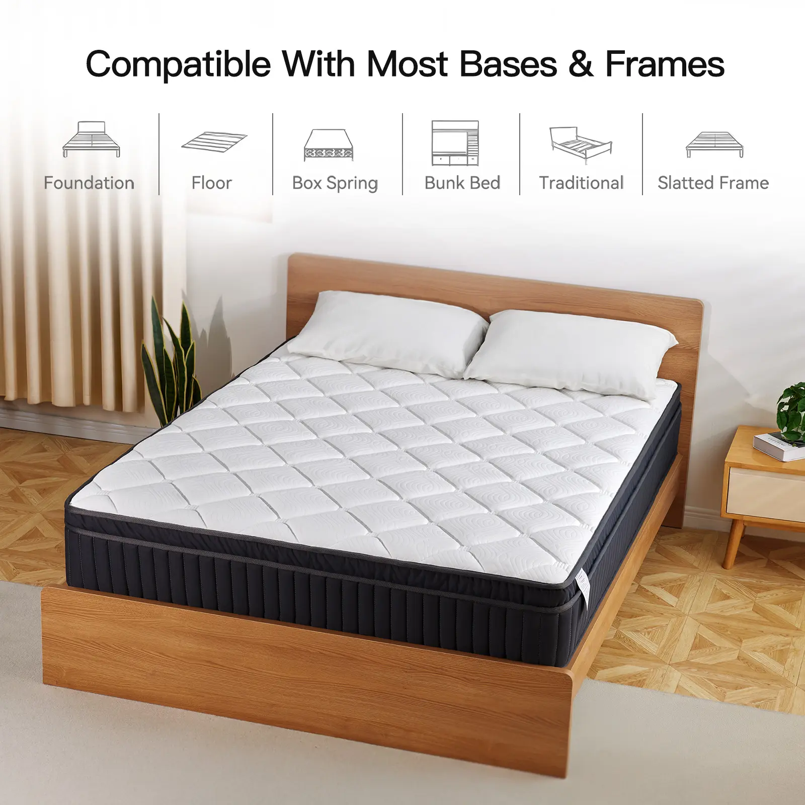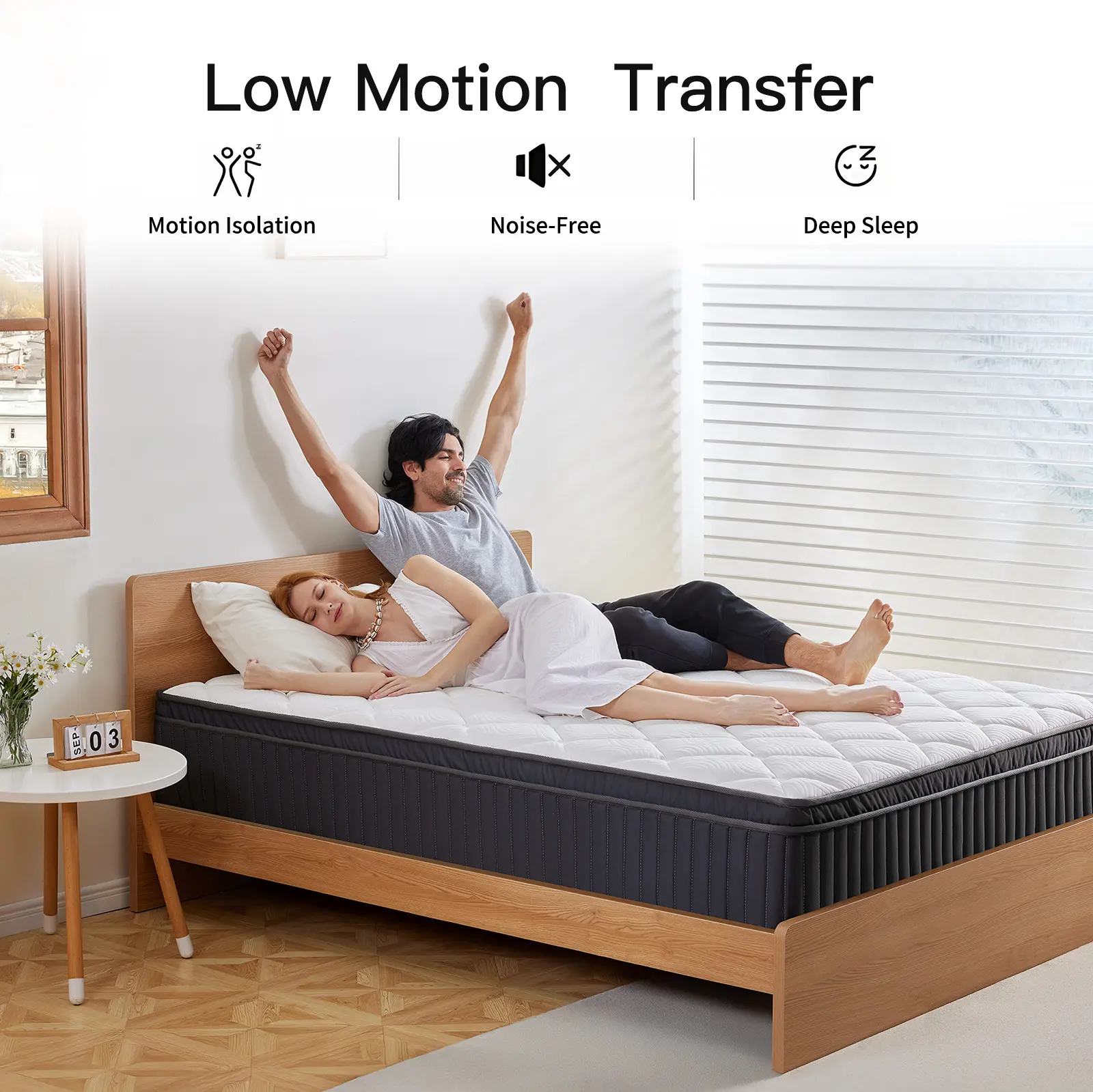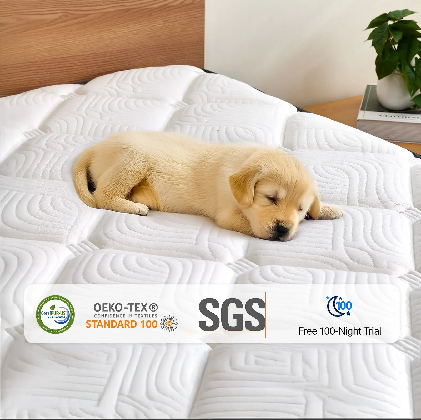 Enhanced Responsive Support - The hybrid mattress uses more elastic materials, with Alloy Steel Material Springs and additional lumbar foam working together to provide stronger support. This helps prevent the hips and lower back from sinking, keeping the spine in proper alignment.(The alloy steel springs offer a longer lifespan and are more resistant to rust.