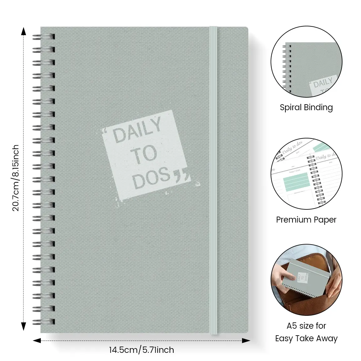 Spiral Bound for Easy WritingThe spiral binding allows smooth page turning and a flatter writing surface, giving you a more comfortable writing experience. It is convenient for both quick note-taking and detailed planning, while also making it easier to flip back and review previous pages.