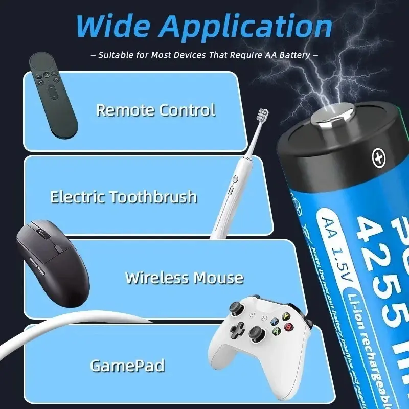 1.5V Rechargeable Lithium AA Batteries has constant voltage output, Ideal for high power consuming devices. Highly Recommended for XboxX controller, Bilink video Doorbell, camera, motorized toys, smart home devices, microphone etc.