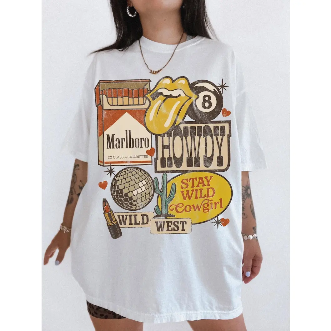 [Sale up to 50%] [Free Ship] Howdy Western Collage Tee Disco Cowgirl Shirt Rodeo 90s Grunge Streetwear Retro Baddie Top Boho Hippie Funky Wild West Shirt