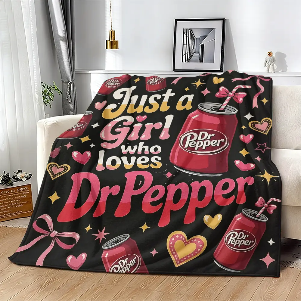 Countdown Sale! The Dr Pepper blanket that makes your heart flutter instantly! Black and pink contrast color + cute print. An extremely funny gift that you can give to yourself or your best friend.Suitable for all four seasons cozy flannel blanket