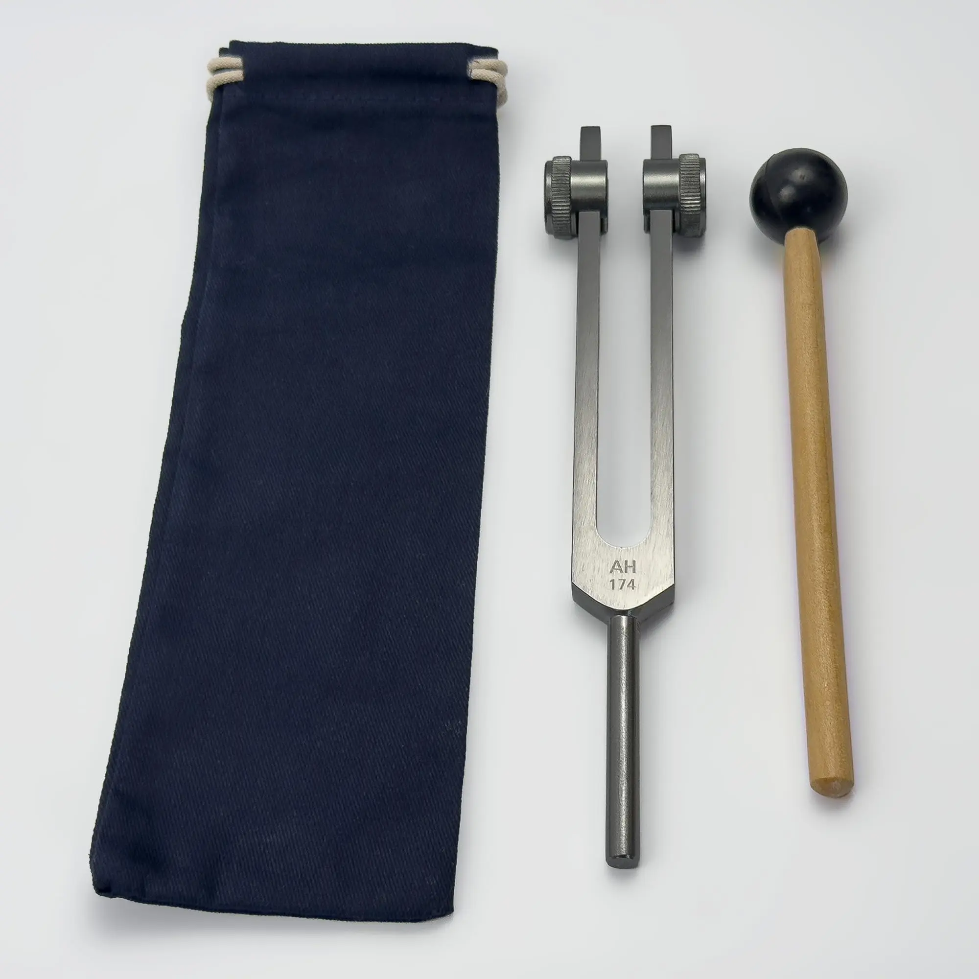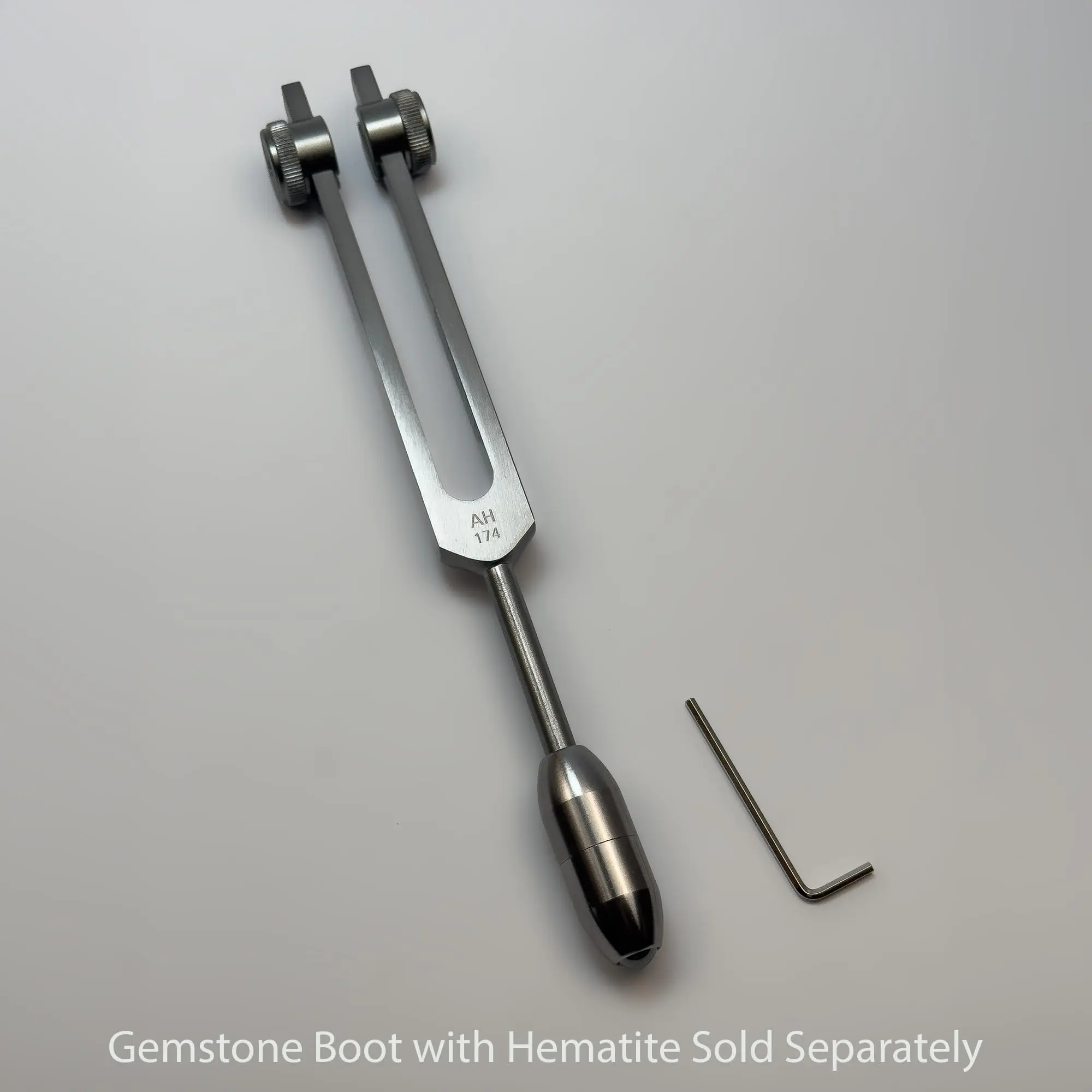 The 174 Hz Solfeggio Weighted Tuning Fork by Myriad Melodies is crafted to elevate your sound healing practice, serving as a powerful instrument for emotional balance, energy alignment, and relaxation. Known for its deep resonance, the 174 Hz frequency is often associated with pain relief and grounding, creating a calming presence in any environment. Ideal for both new and seasoned practitioners, this tuning fork has been carefully tuned to provide a steady frequency that can help release stagnant energy, clear mental clutter, and foster a more peaceful state of mind. This tuning fork is weighted, which enhances its ability to deliver deep vibrations that resonate strongly throughout the body and energy field, encouraging physical and mental relaxation. The weighted design amplifies the fork's effectiveness, especially during sound healing sessions, chakra work, or meditation. When activated, the tuning fork produces a profound resonance that supports spiritual and emotional clarity, helping to bring about a heightened sense of self-awareness and connection. The sound produced by the 174 Hz tuning fork creates a calming ambiance perfect for self-discovery and meditation, helping you connect with your inner self and release stored tension. Each purchase includes a 174 Hz Solfeggio Weighted Tuning Fork, a durable carry bag for easy portability, and a striker for activating the fork. This essential set equips you with everything you need to begin your sound healing journey, whether you’re using it for personal growth or as part of a professional practice. Add the optional Myriad Melodies Crystal Attenuator Handle to intensify its therapeutic effects, focusing the vibrations to amplify relaxation and energy balance further.