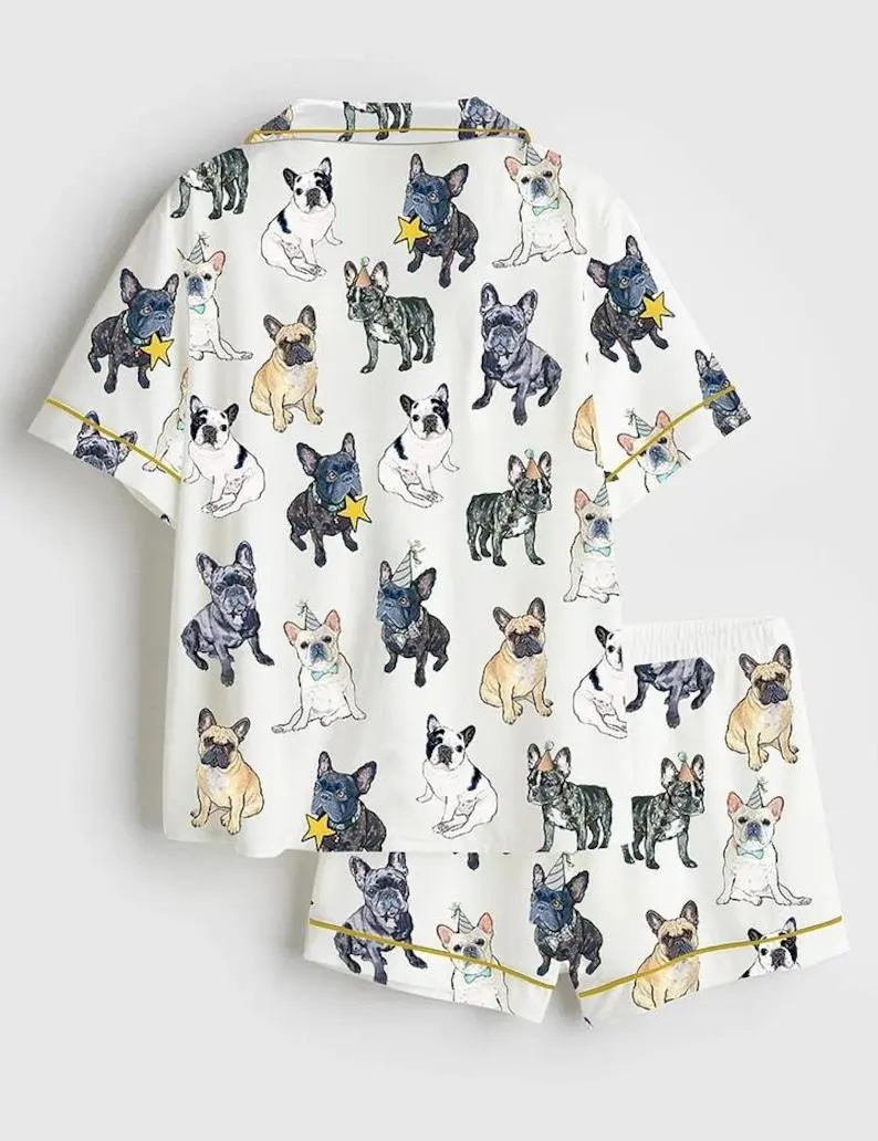5. French Bulldog Satin Short Pajama Set, Bulldogs Football Short Pajamas, Matching Family Sleepwear Set, Pajama Set For Women And Kids
