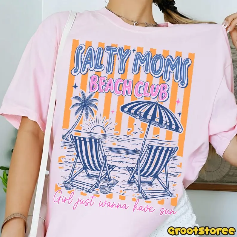 [Sale up to 50%] [Free Ship] Retro Beach Quote T-Shirt, Salty Moms Summer Shirt, Striped Beach Club TShirt Sublimation, Funny Vacation