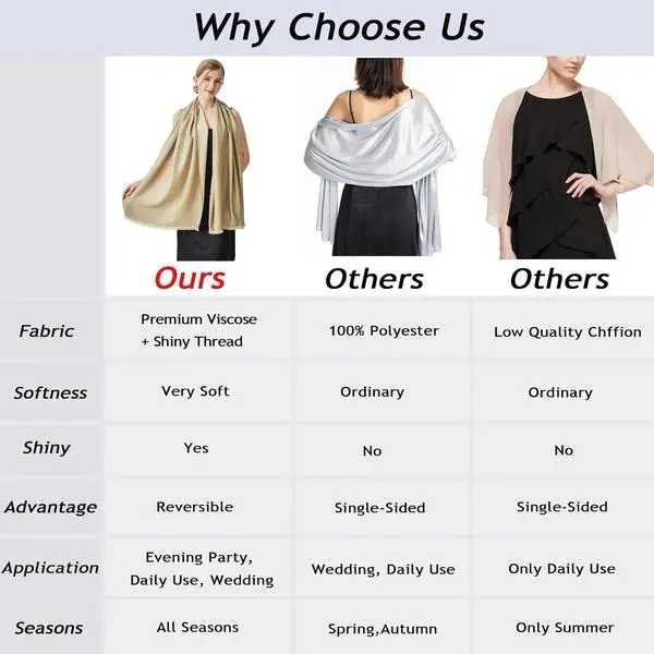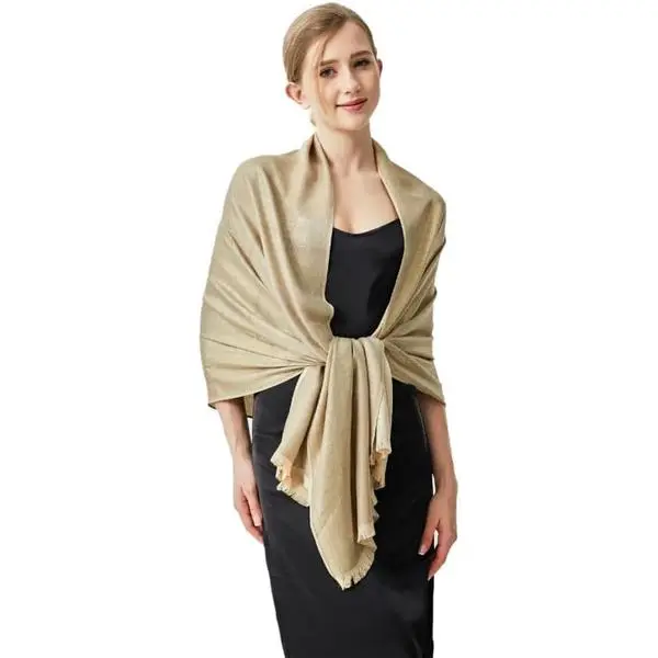 ✨ Reversible Design: This gold shawl features a double-sided design. One side sparkles, the other is solid and simple. Choose your preferred look effortlessly. Perfect for evening parties, weddings, and formal events.