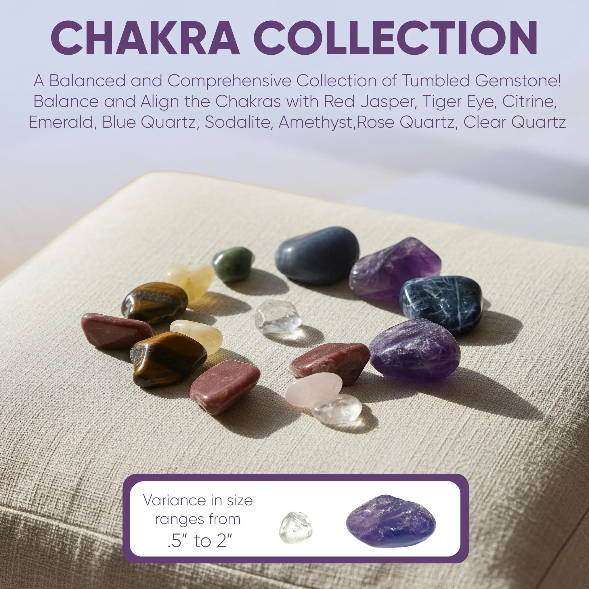 CHAKRA KIT – Thoughtfully curated 9-piece Tumbled Gemstone collection Designed for Chakra Balancing, Sound Healing, Meditation, and Energy Work. A perfect tool for Holistic Wellness and Spiritual Practices, and a perfect Gift for any occasion!