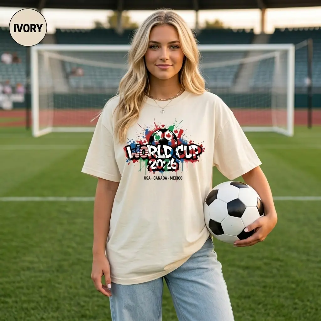 Comfort Colors Soccer 2026 Trophy Shirt – USA Canada Mexico Football Fan Tee, Colorful Game Day Graphic T-Shirt, Unisex Sports Gift for Men Women