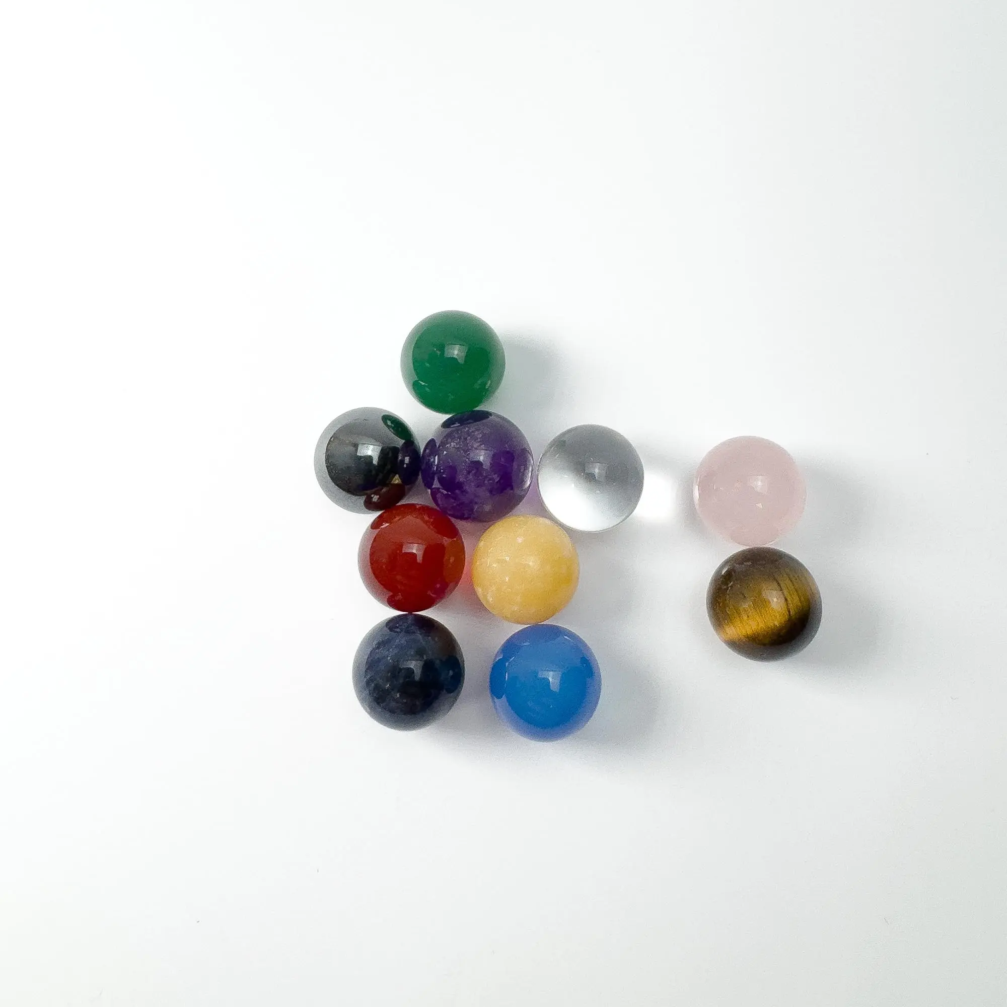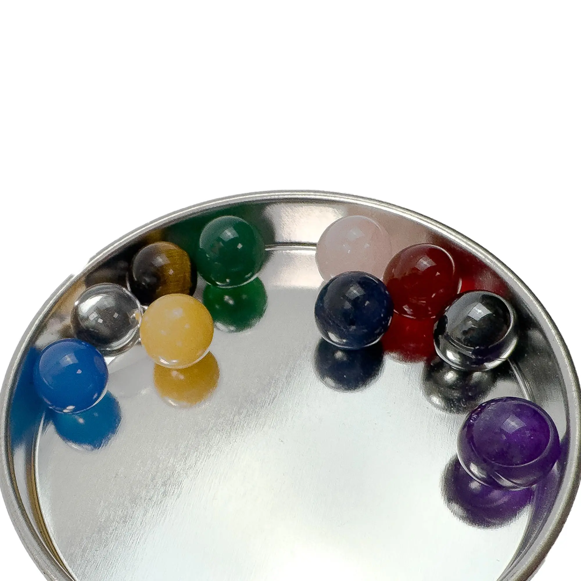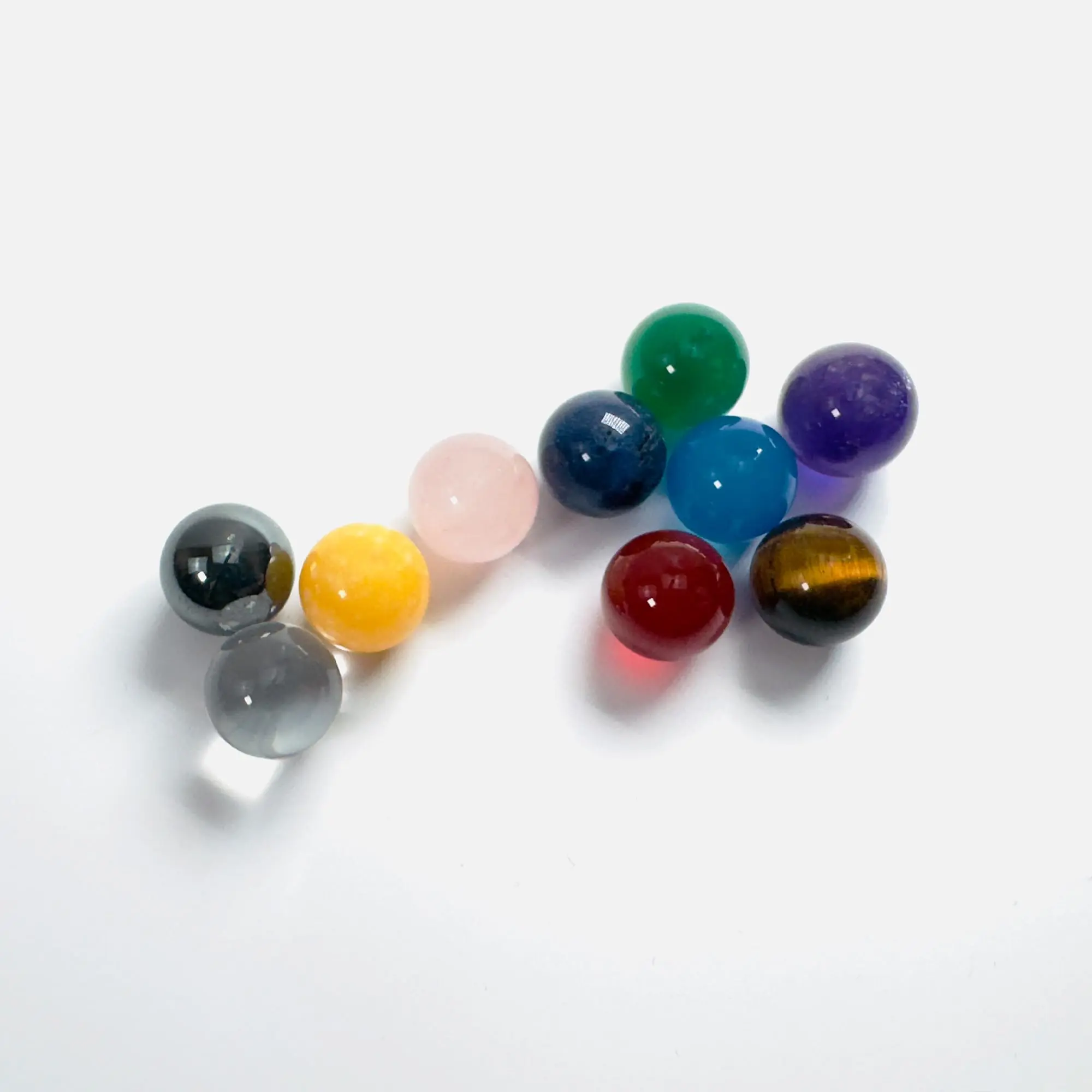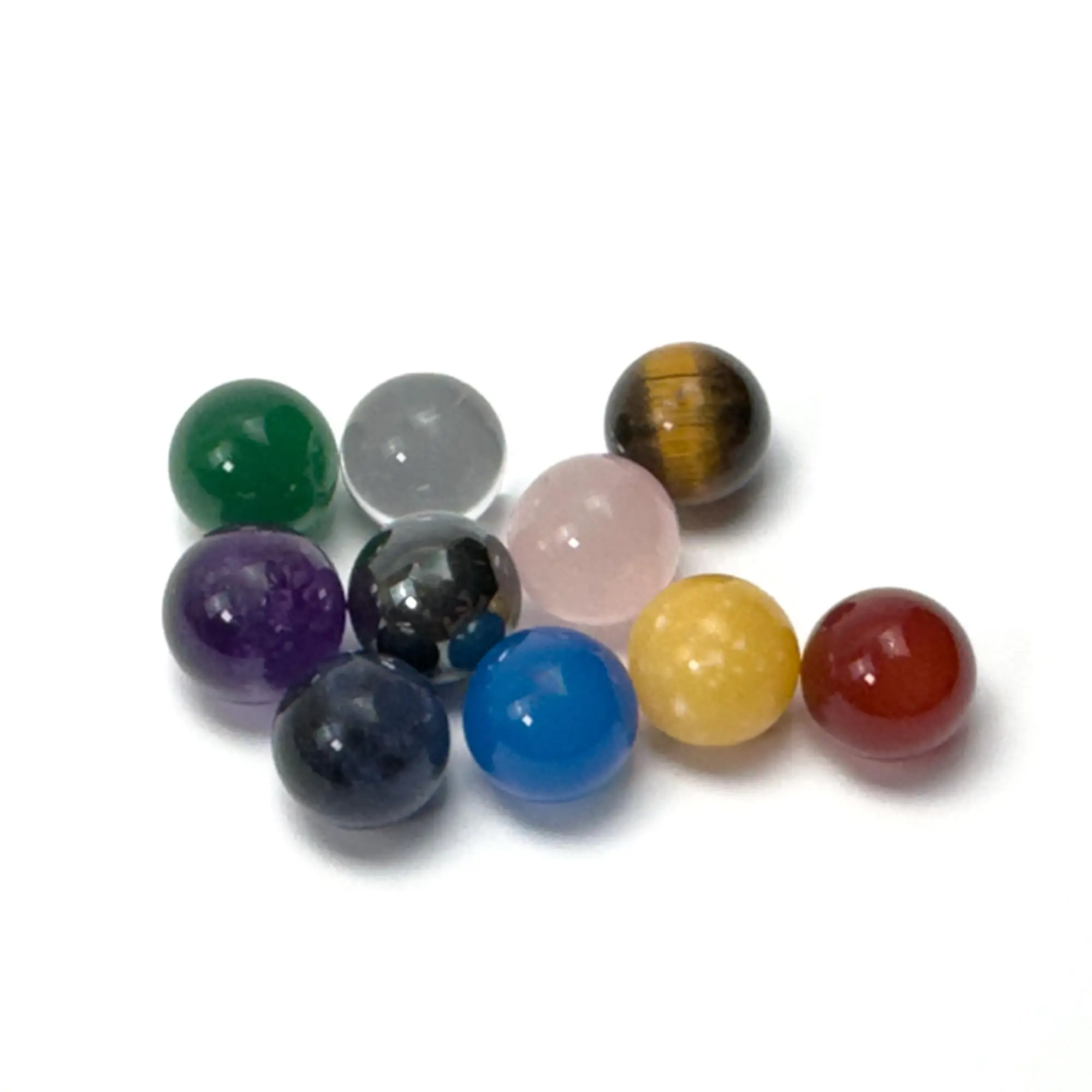Myriad Melodies' 10PC 10mm Gemstone Pack designed for Tuning Fork Attenuator Handles. This versatile collection features colorful crystals, each corresponding to a chakra, facilitating effective energy alignment and balance. Easily attach the 10mm crystal spheres to your Gemstone Boot Attenuator Handle to customize your setup. Simply swap out the crystal tips to adjust resonance and vibration for a tailored healing experience. With this gemstone pack, you can unlock the full potential of sound healing and elevate your therapeutic sessions.