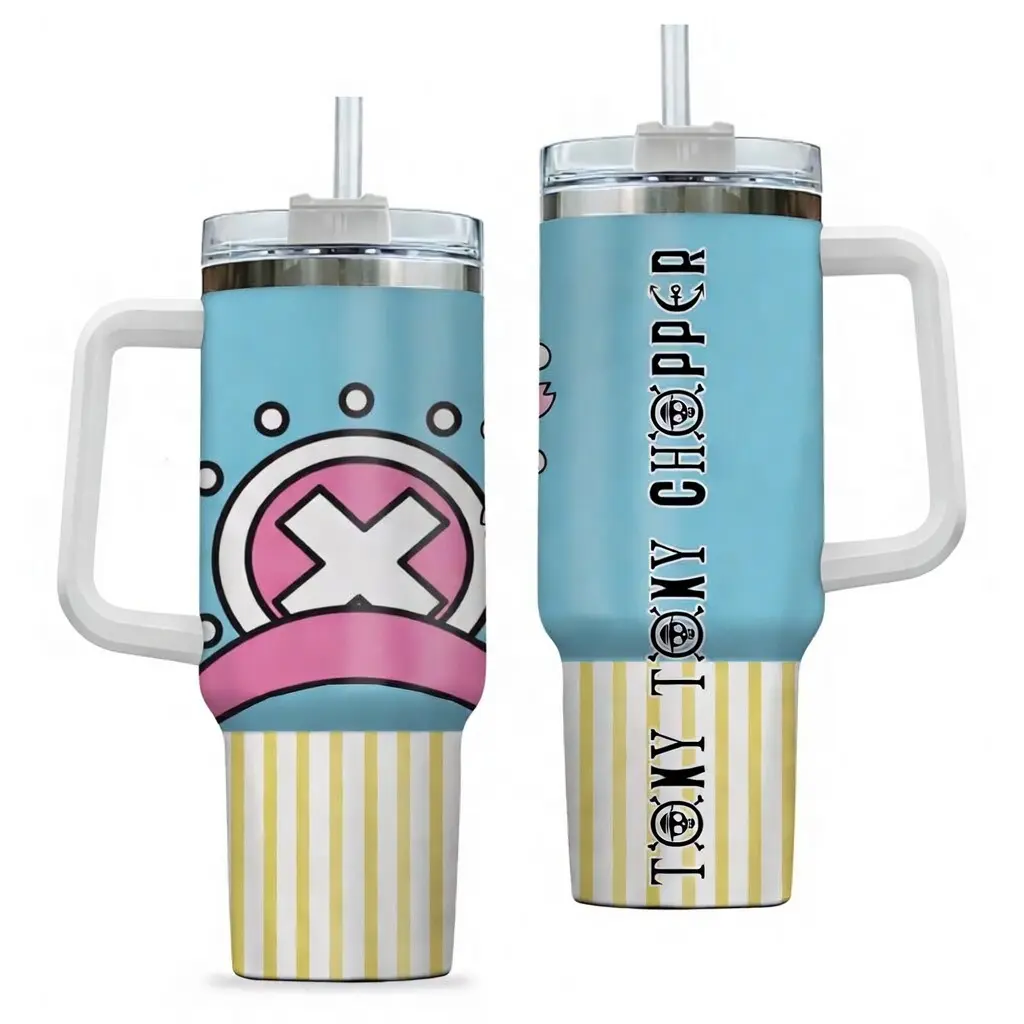 5. Tony Tony Chopper v2 40oz Tumbler with Handle and Straw, Stainless Steel Vacuum Insulated Cup, OP Jolly Roger Skull Design, Anime Merch, Anime Tumbler