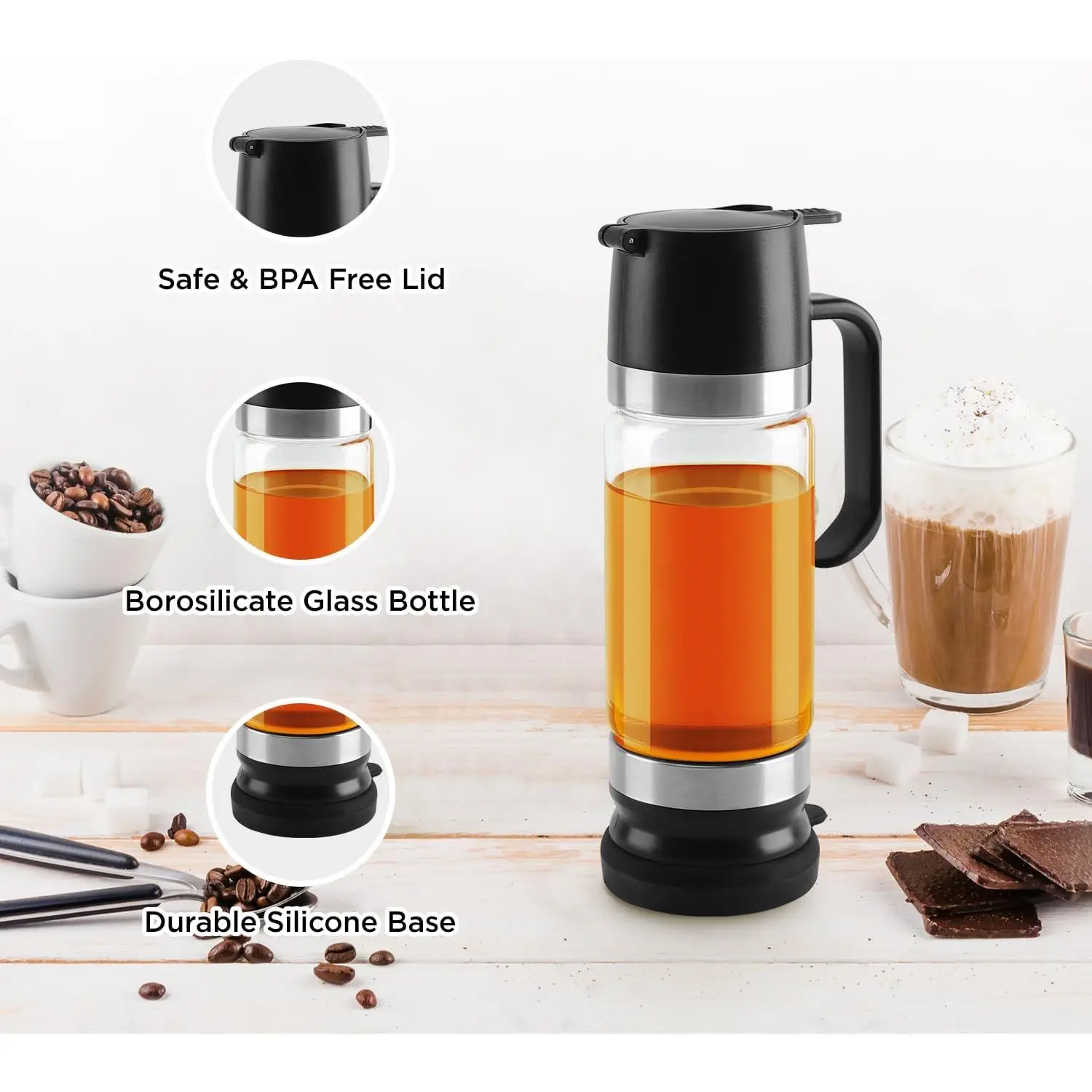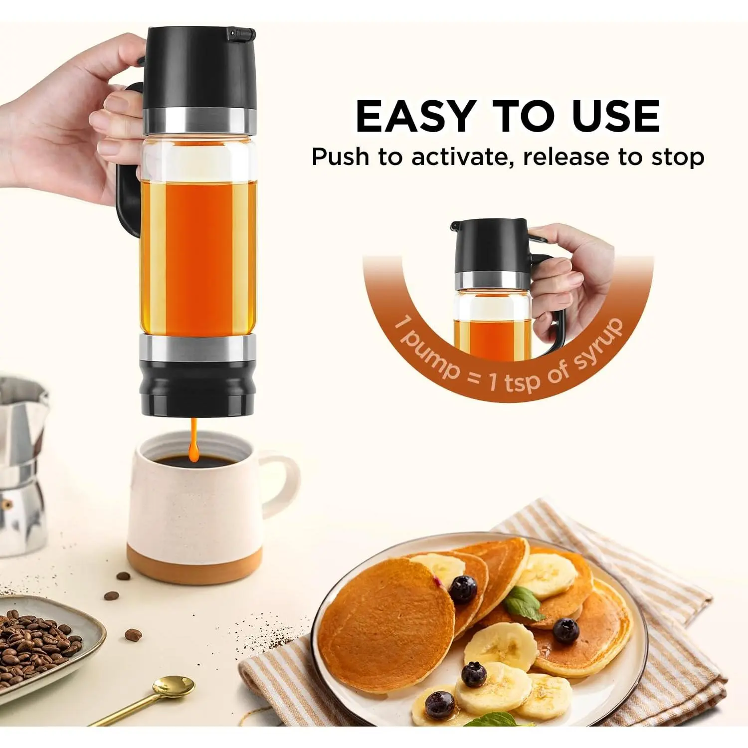 Coffee Syrup Dispenser, Honey Dispenser, 12 OZ Glass Syrup Bottles with Handle, No Drip Pouring, Coffee Bar Accessories for Coffee and Tea, Black 2 Pack