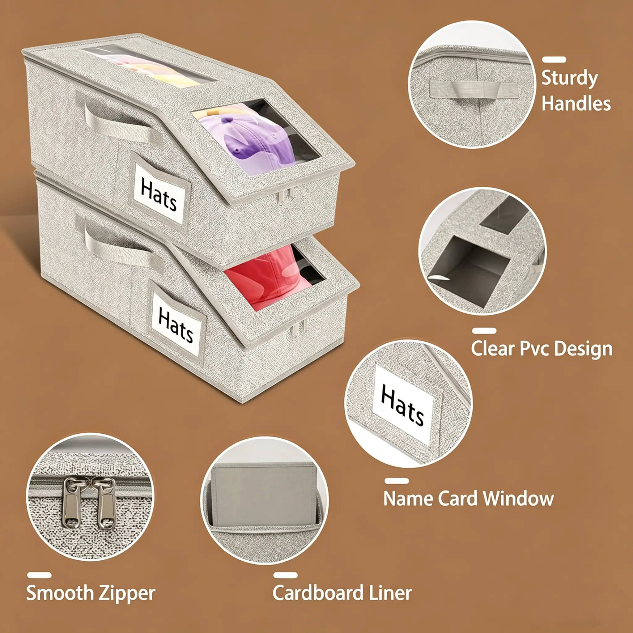 TikTok Shop Hat Storage Organizer Zipper Dustproof Large Capacity Stackable Baseball Cap Clear View Container