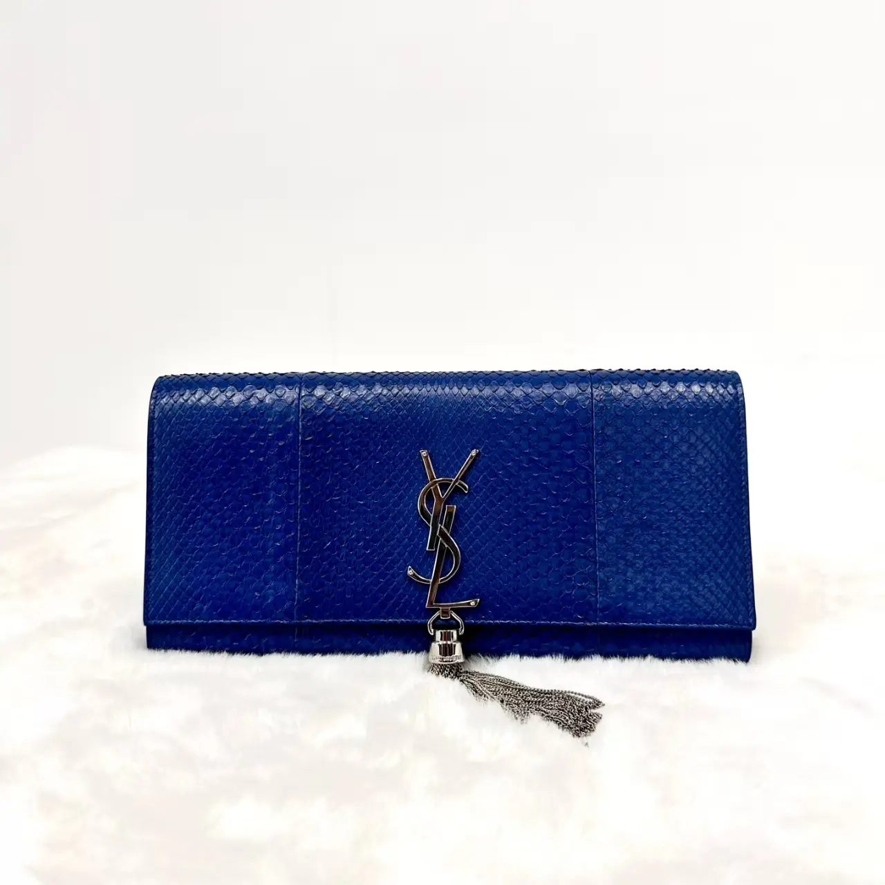 YSL Saint Laurent Klein Blue Snakeskin Clutch Bag | Dust Bag