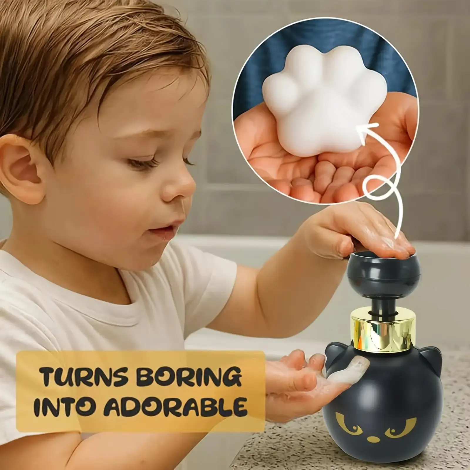 Cute Cat Paw Foam Soap Dispenser - Touch-Activated, No Buttons Needed, Cat Claw-Shaped Foam & Cute Black Cat Design, Bathroom Accessory, Soap Container