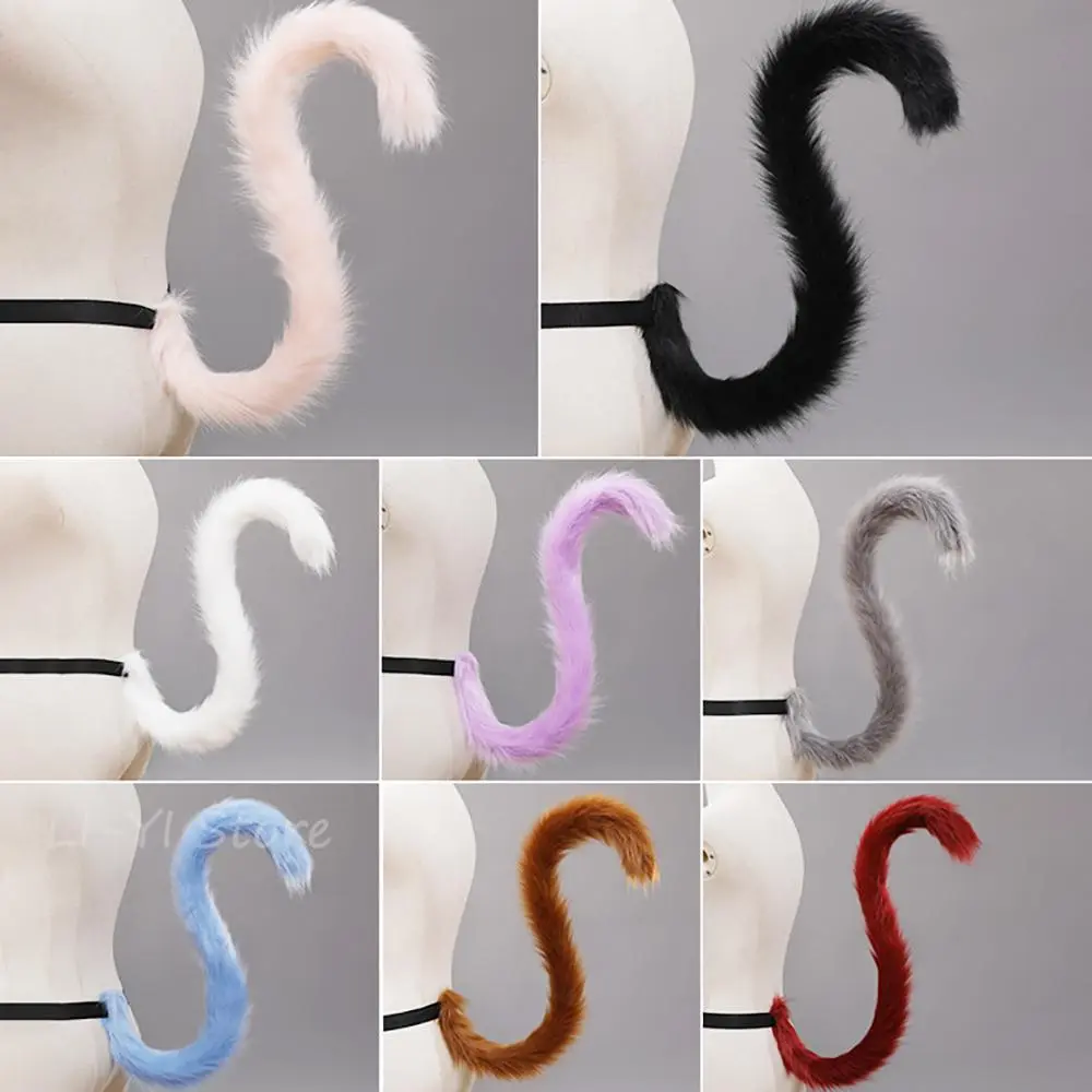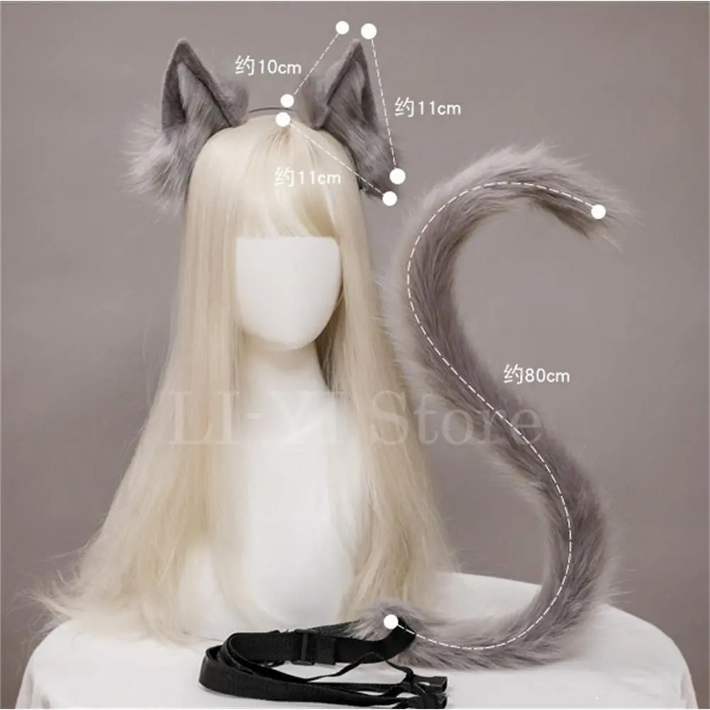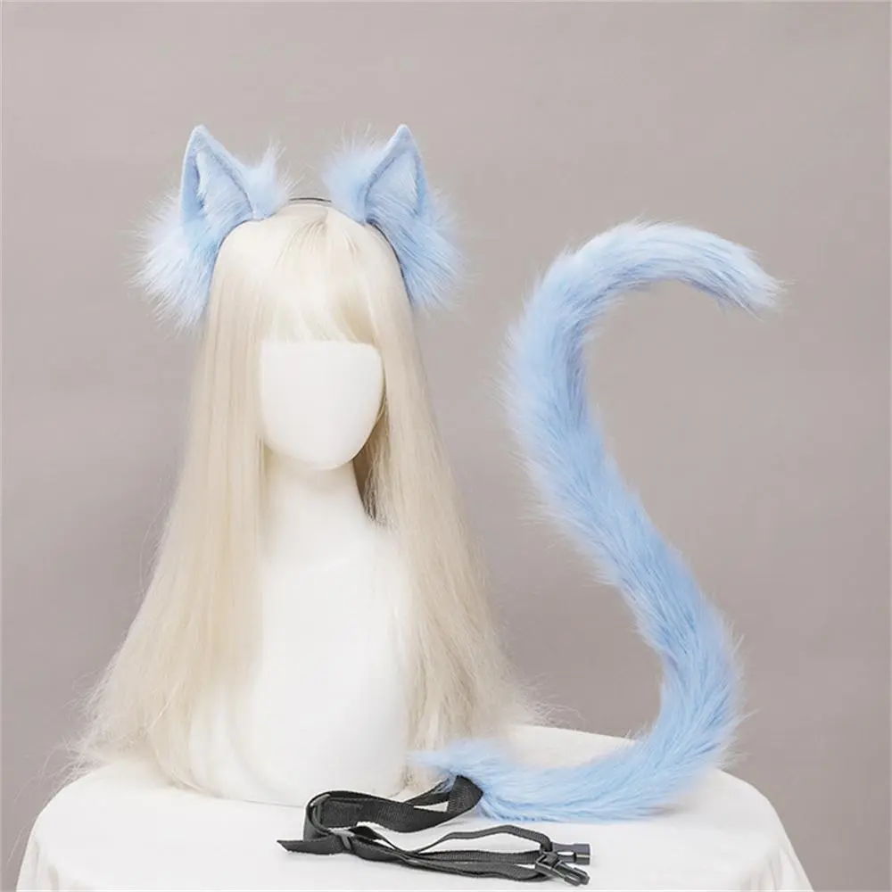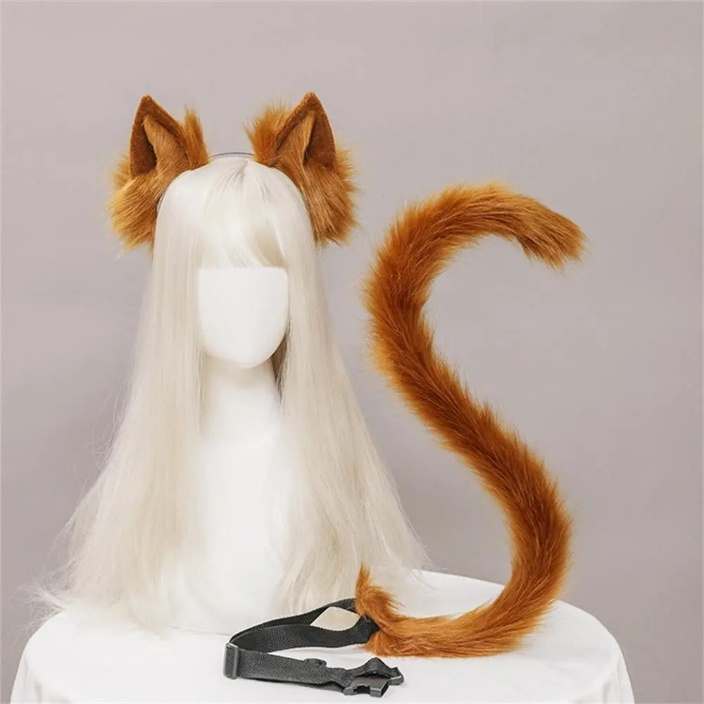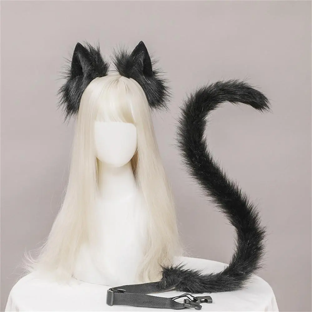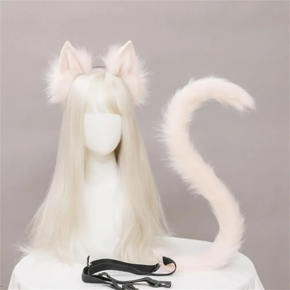 2Pcs/set Plush Cat Ears Tail Set Realistic Lolita Headband Cat Tail Props Hand-made Simulation Animal Ears