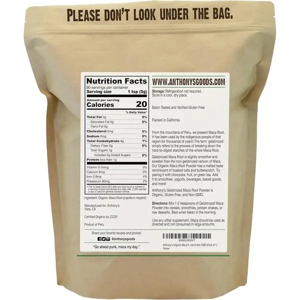 Organic Maca Root Powder, 1 lb, Gelatinized for Enhanced Bioavailability, Gluten Free, Non GMO