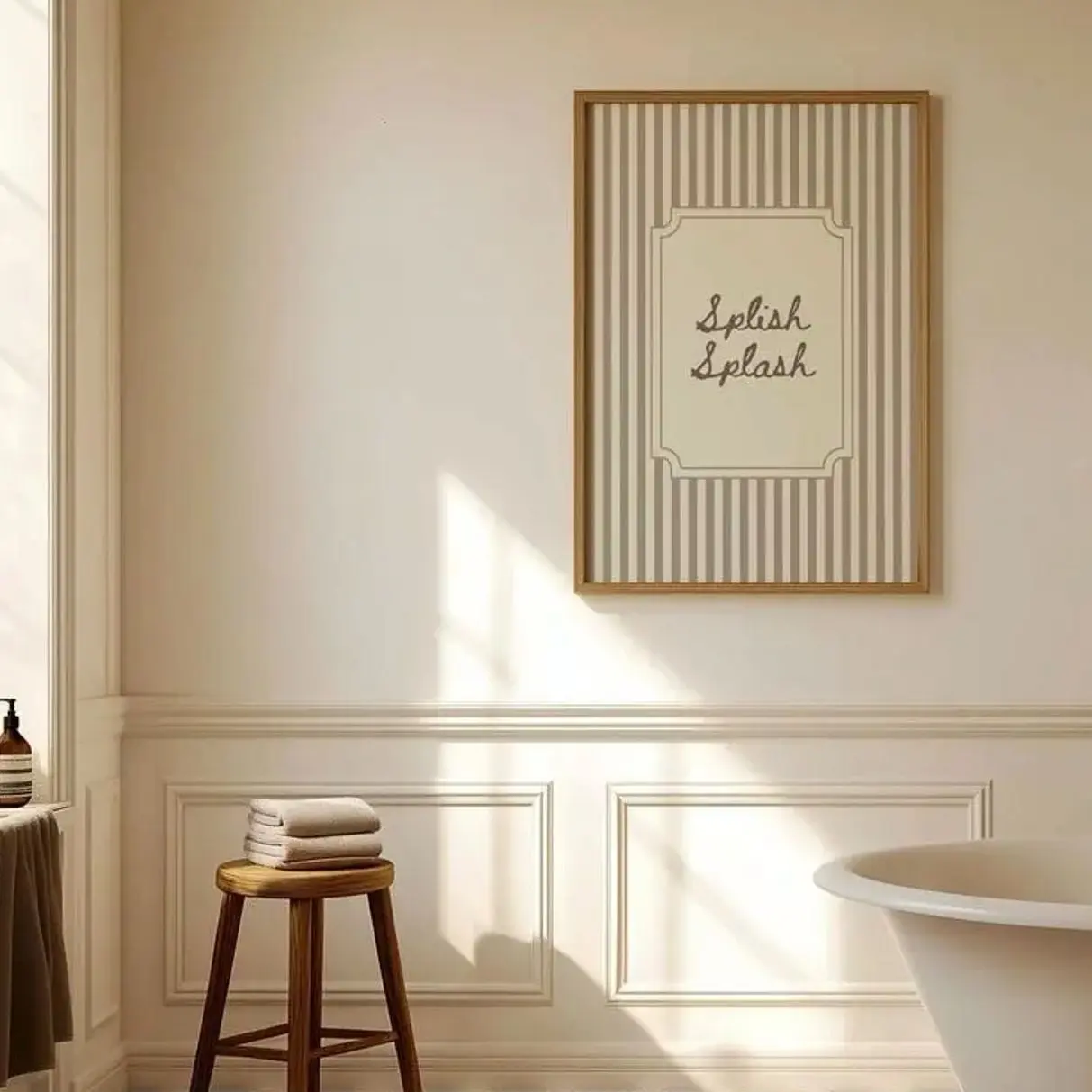 🎨 Splish Splash Print Neutral Bathroom Wall Art, Vintage Striped Shower Room Decor – ELEVATE YOUR SPACE WITH PERFECT PRINT ART! 🖼️✨