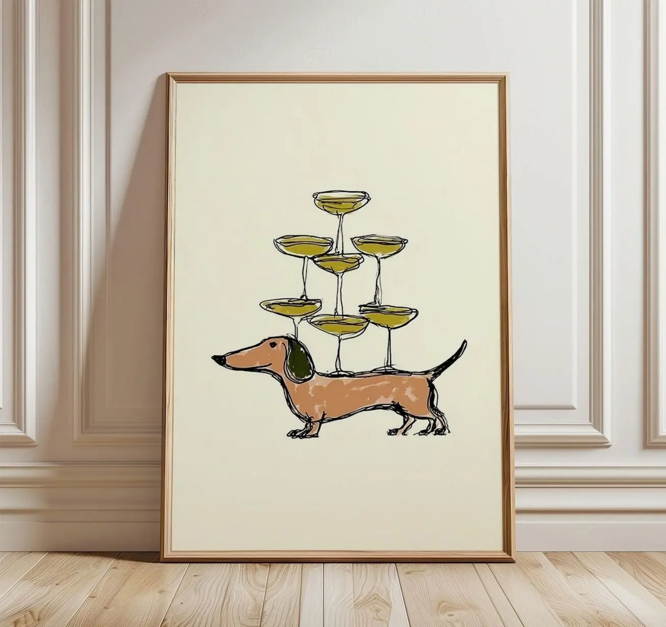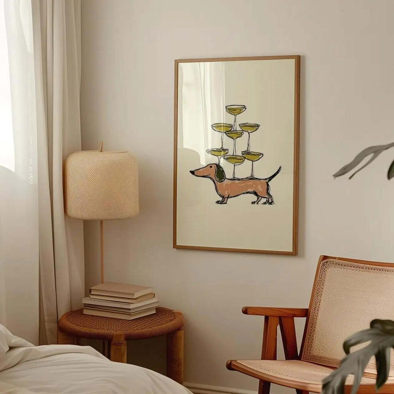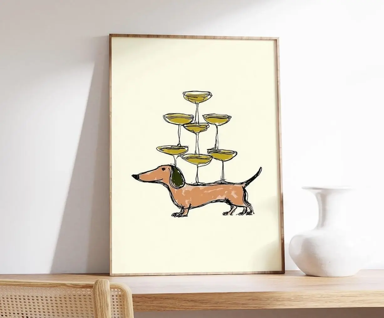 🎨 [Sale off up to 50%] [Free ship] [No Frame] Dachshund Champagne Art Print, Whimsical Dog Wall Art, Fun Bar Decor Poster, Playful Modern Home Illustration – ELEVATE YOUR SPACE WITH PERFECT PRINT ART! 🖼️✨