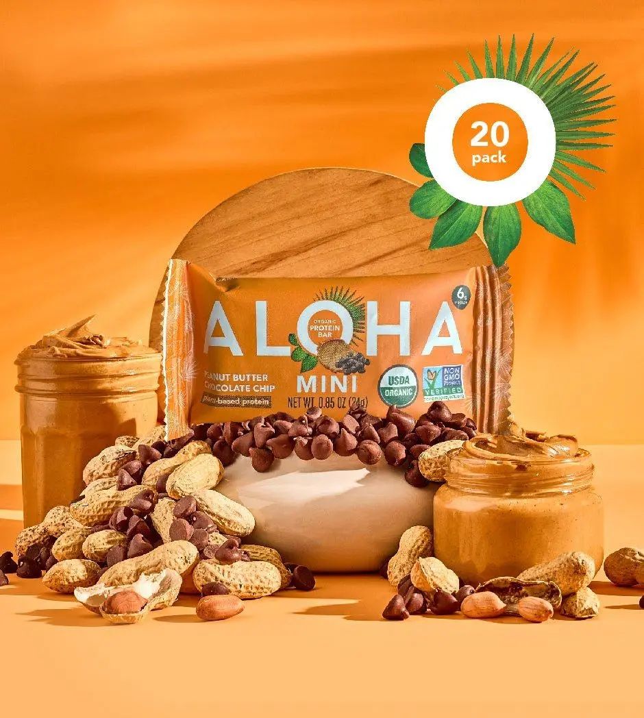 ALOHA - Peanut Butter Chocolate Chip - Mini Bars - 20-count - 6g of plant-based protein - 2g of sugar