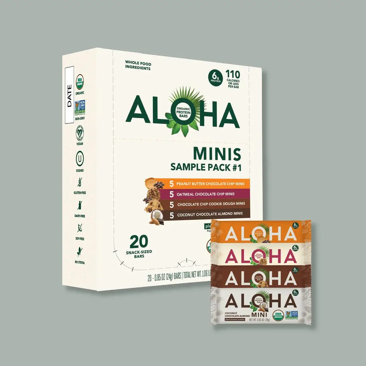 ALOHA - Mini Protein Bar Sampler - Variety Pack - 20-count - 6g of plant-based protein - 2g of sugar or less