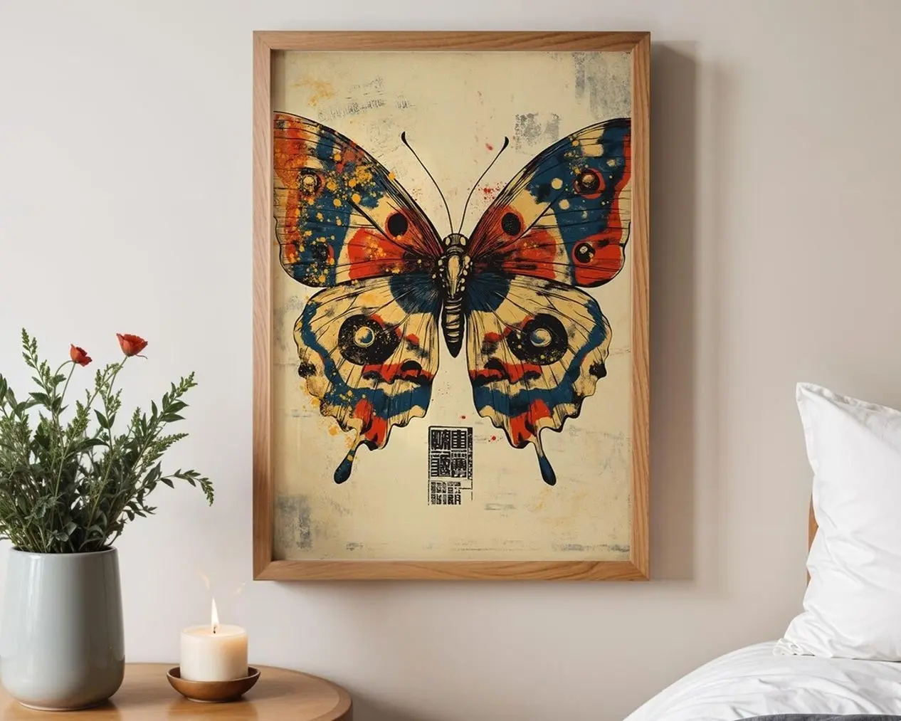 🎨 Retro Japanese Butterfly Wall Art - Vintage Japanese Style Wall Decor - 70s Manga Aesthetic Poster - Bold Butterfly Wall Art - Retro Art – ELEVATE YOUR SPACE WITH PERFECT PRINT ART! 🖼️✨