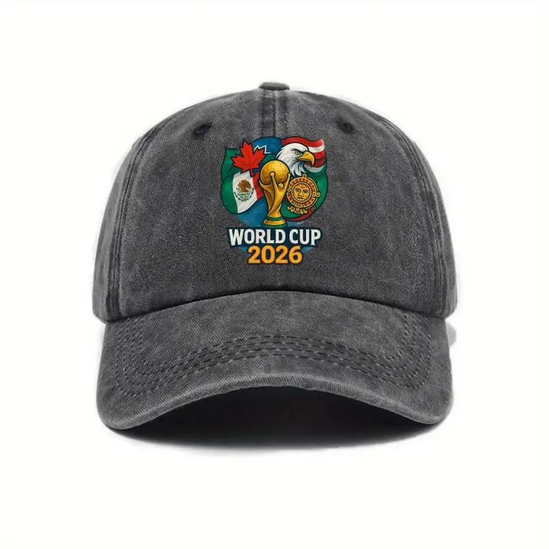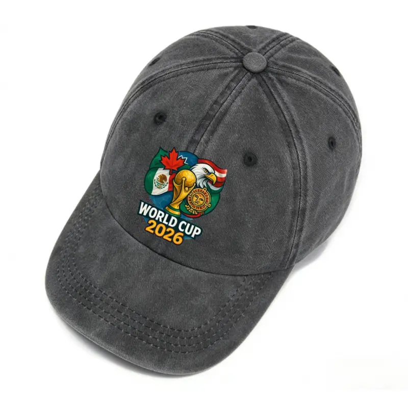 2026 USA-Canada-Mexico World Cup Printed Washed Vintage Soft Top Baseball Cap for Men and Women, Trendy Hat