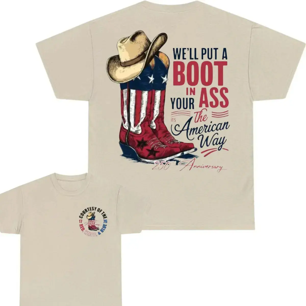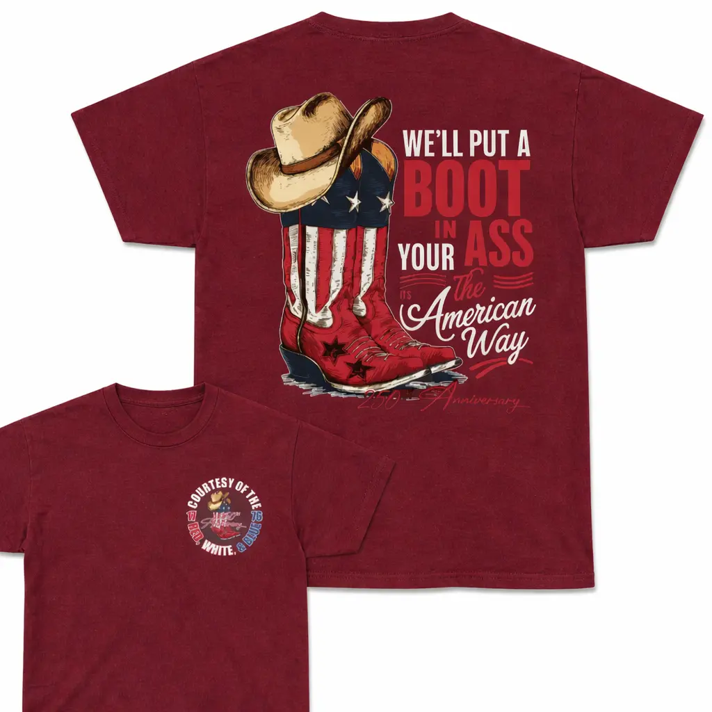 USA 250th Anniversary Boot Inn Your Ass Shirt, Funny Patriotic Cowboy T-Shirt, 4th of Julyy America Flag Tee, Vintage Red White Blue Graphic, Unisex Gift