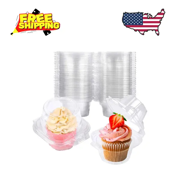50 Pack Individual Cupcake Containers Plastic Cupcake Boxes Cupcake Holders