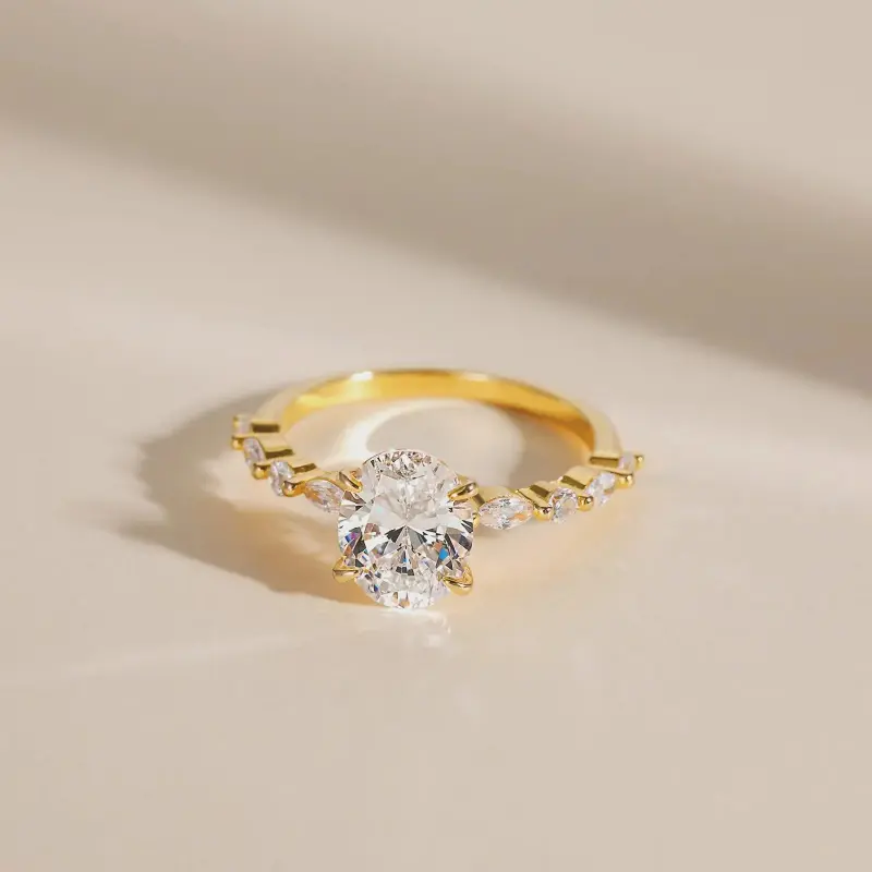 PAVOI 14K Gold Plated Women's Oval Engagement Ring | Wedding Ring