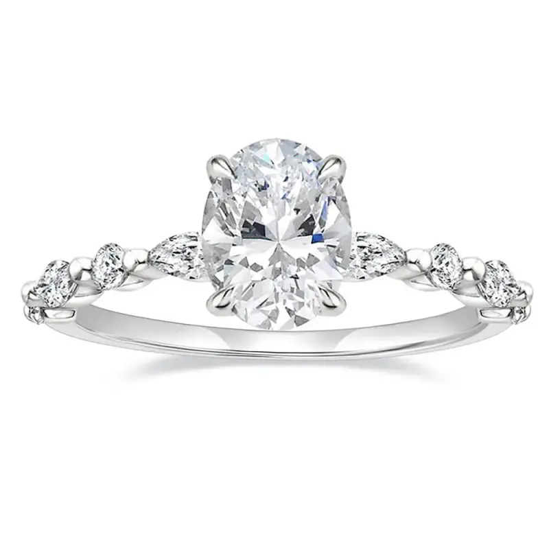 Silver Ring Oval Cut Engagement Solitaire Halo Promise Ring for Women