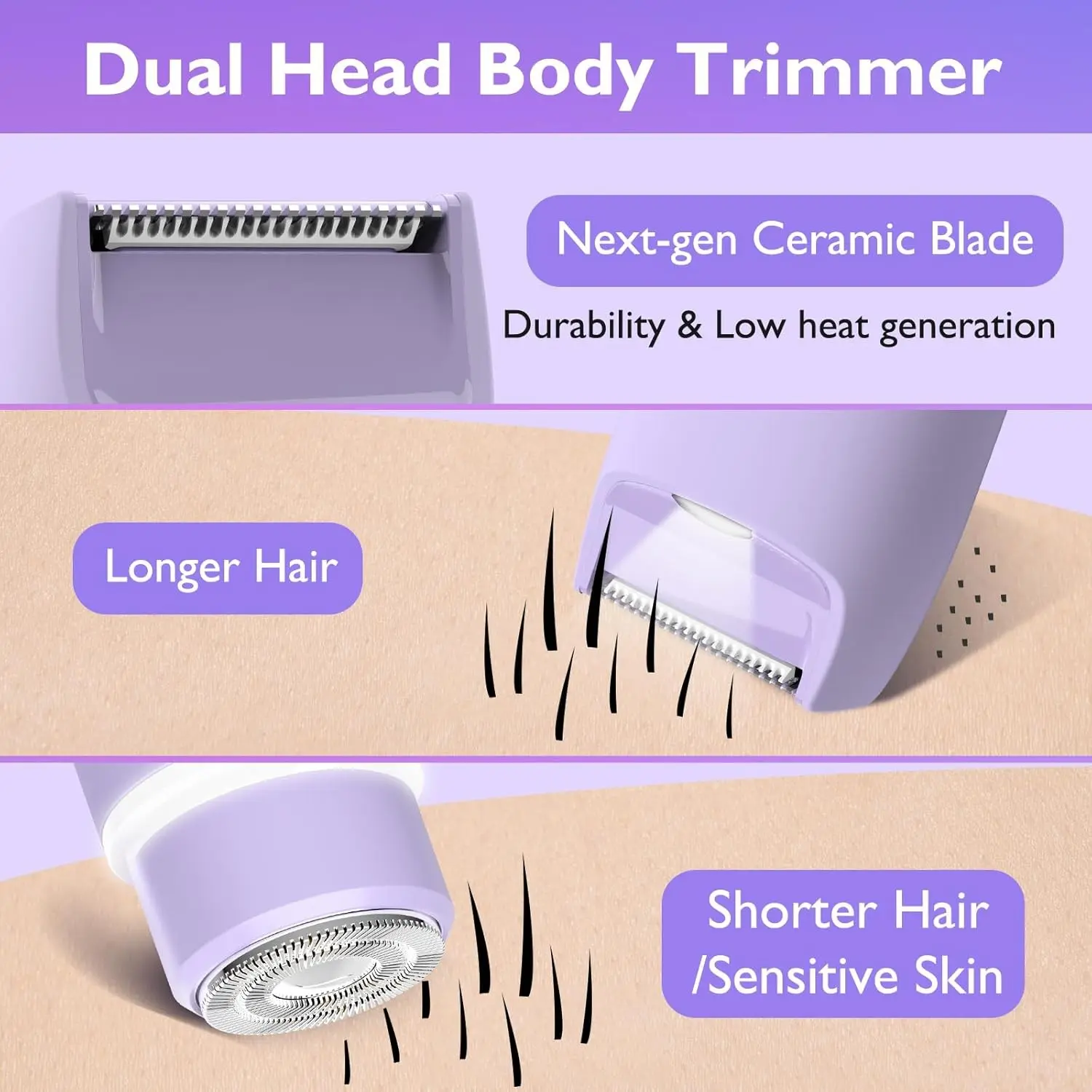 【Dual Blade Design】: Features dual blades for efficient hair removal, ensuring smooth results on legs, arms, and underarms.