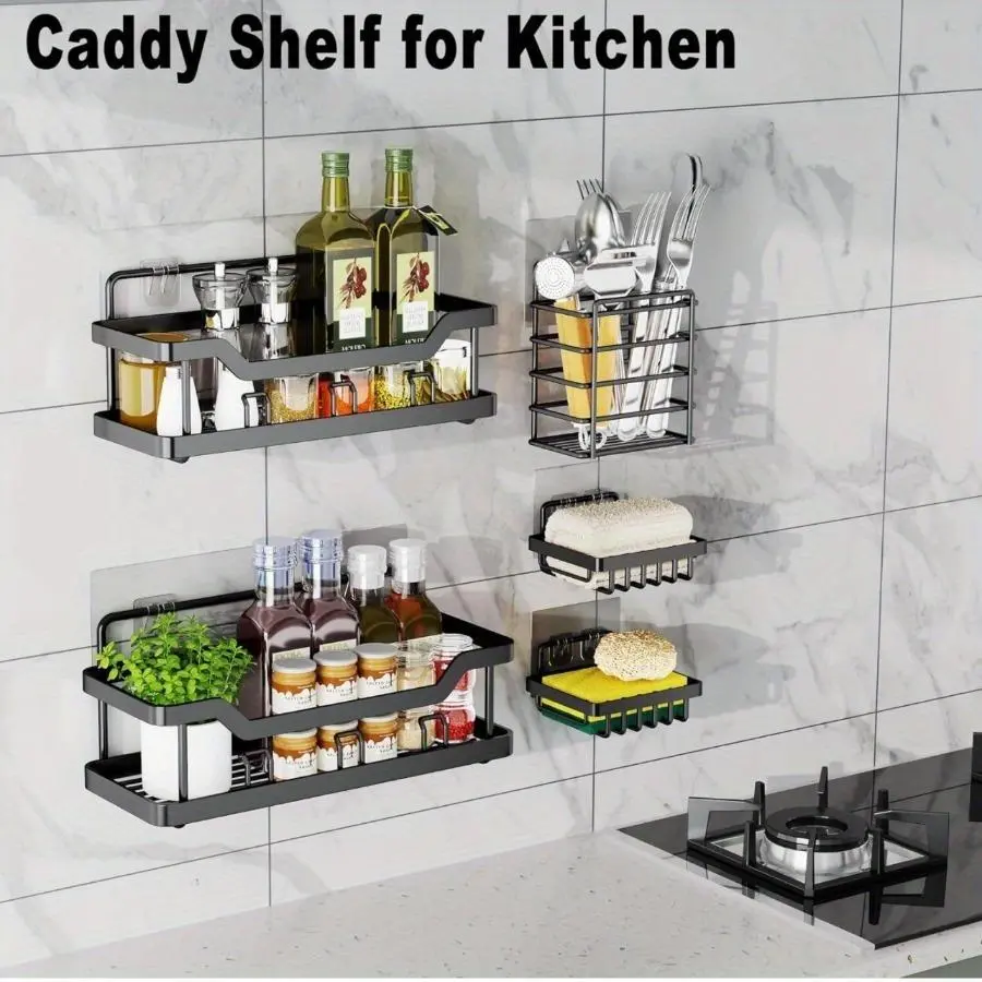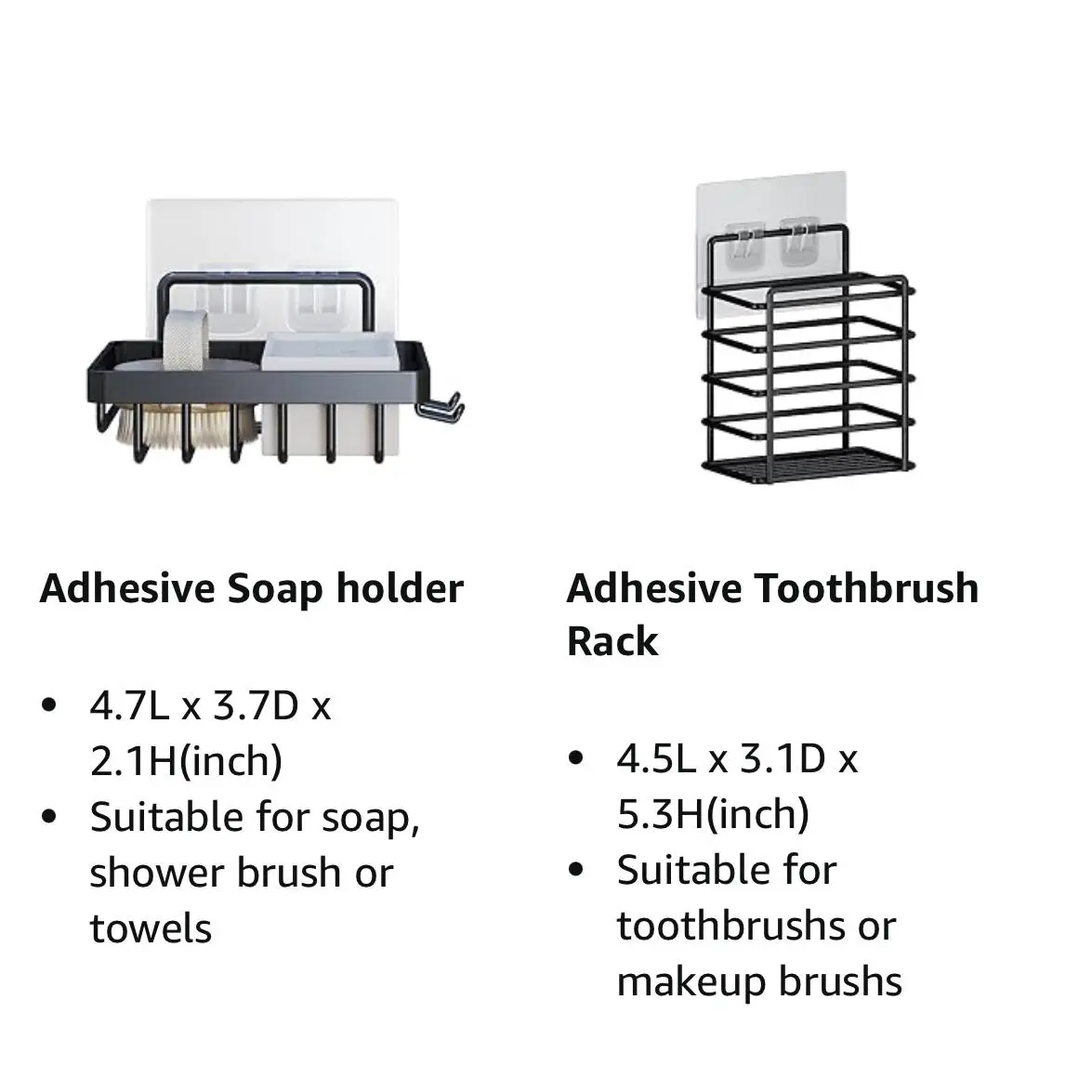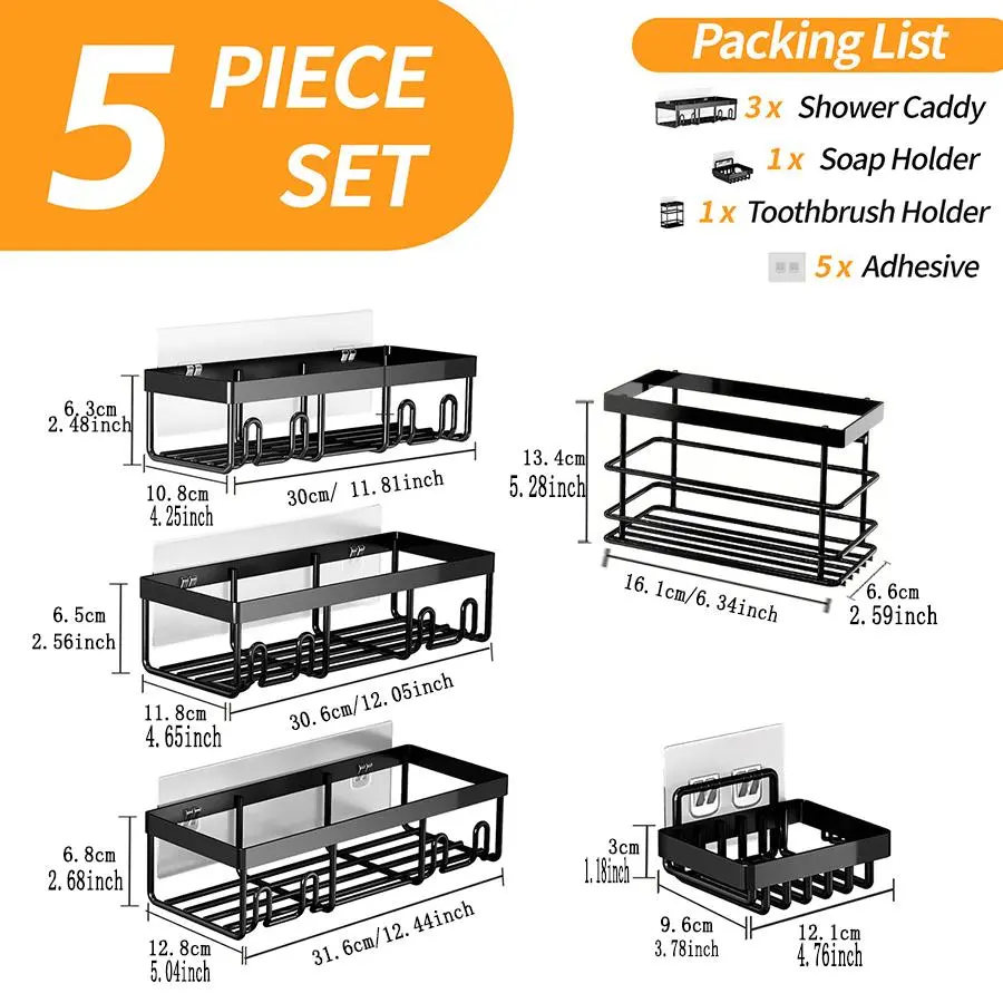 [5 PACK SHOWER CADDY SET]ZHOHO TANT adhesive shower caddy set comes with 2 large shower caddies, 2 soap holders, 1 toothpaste rack, and 5 Adhesives.A great shower organizer shelf helps organize most bathroom items and create a clean & tidy space in your shower area.Never worry about your bathroom or kitchen being in a mess.