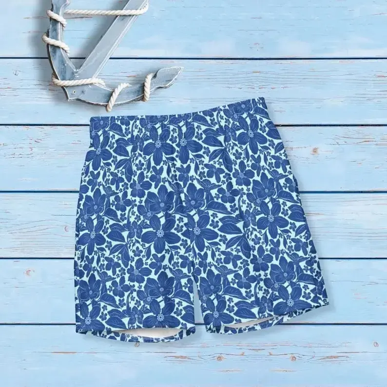 Tropical Matching Couples Swimsuits – Blue His & Hers Beachwear for Honeymoon Vacation