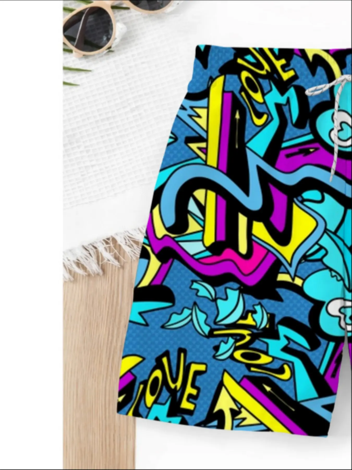 【Graffiti Print】: Features a vibrant graffiti print, adding a unique and trendy look to your child's beachwear.
