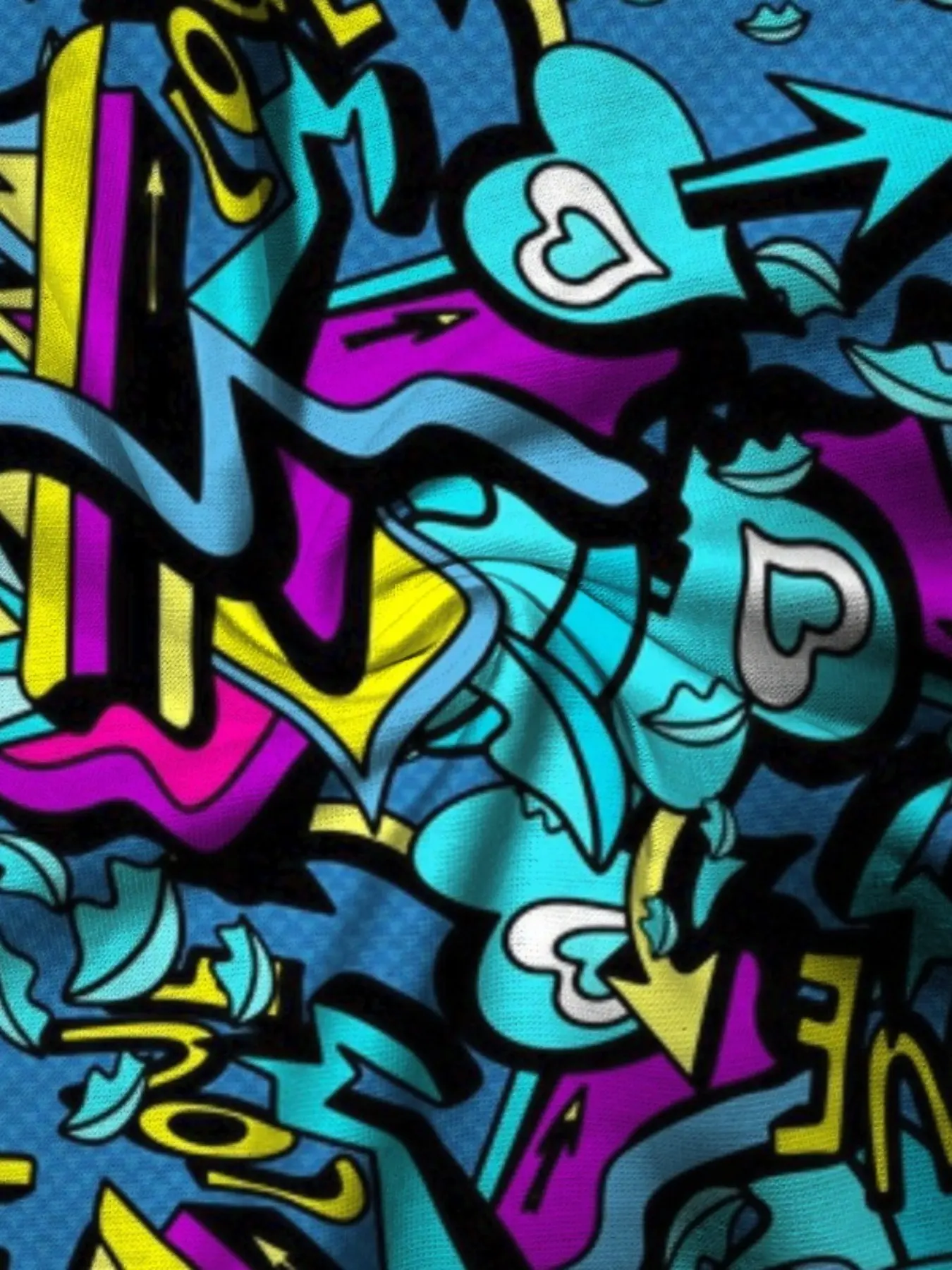【Trendy Design】: Stand out with this trendy graffiti print, ideal for street-style fashion.