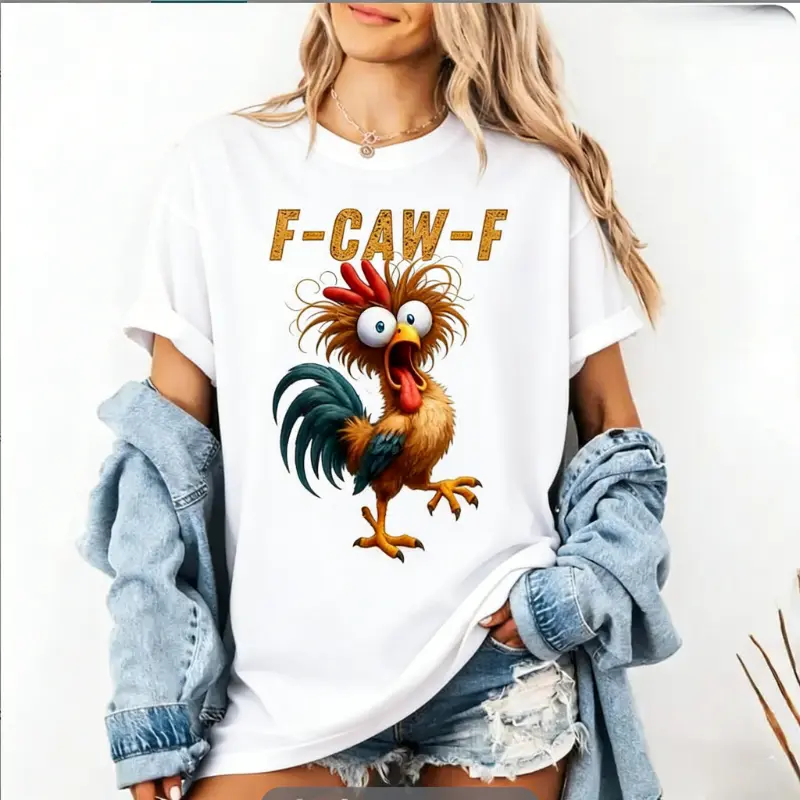 Funny Rooster Meme Shirt, F-CAW-F Chicken Humor Tee, Silly Farm Animal Graphic Top, Birthday Gift for Men Women Womenswear Tshirt