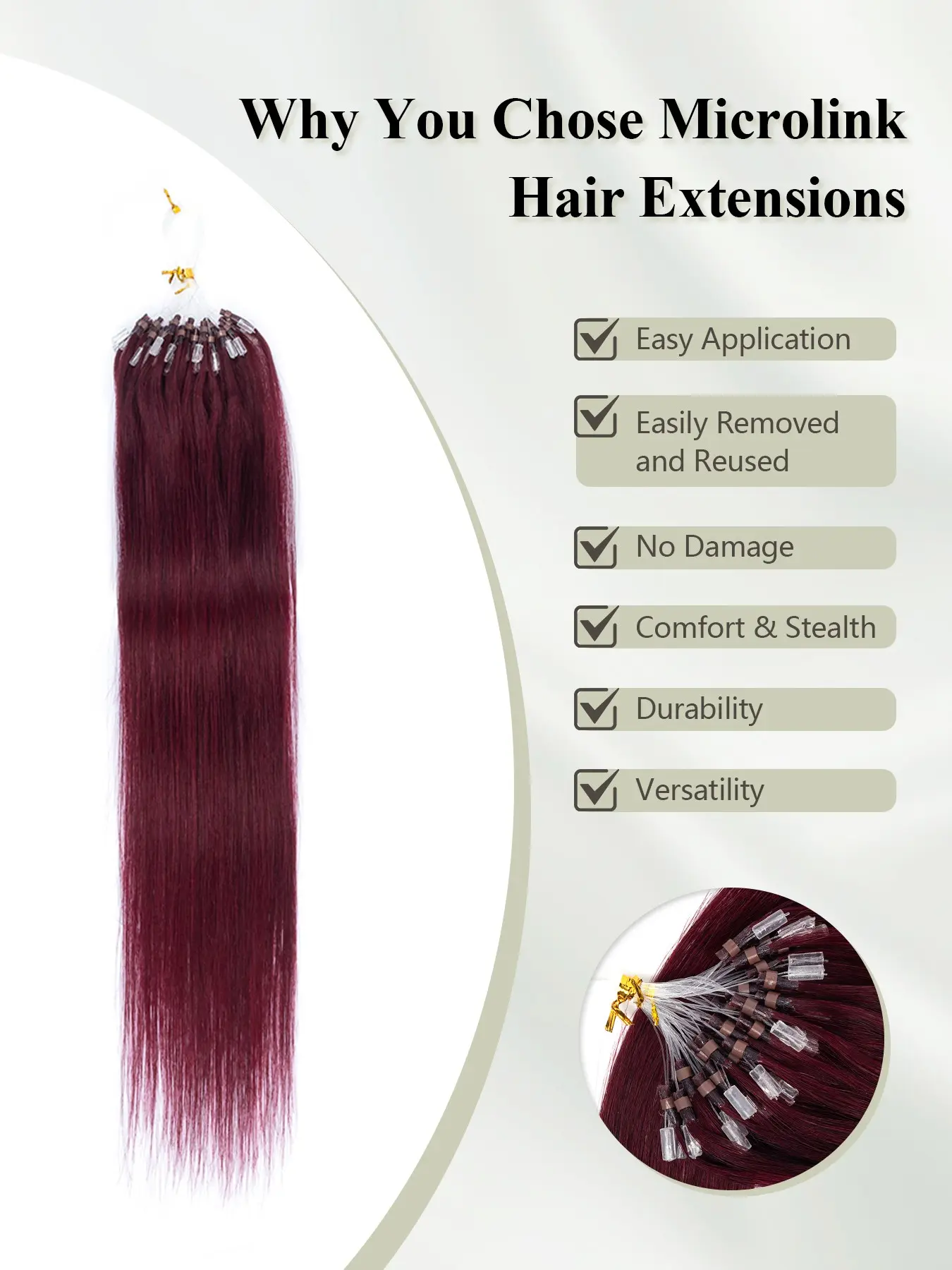 30g 99J Microloop Beads Hair Extensions In Nano Ring Links Human Hair, 9 Colors Natural Straight Hair for Women, 30.48-60.96 cm, Add Volume&Length, Blonde Brown Black European Hair, 50 Strands/pack Micro Beads Link Hair Extension