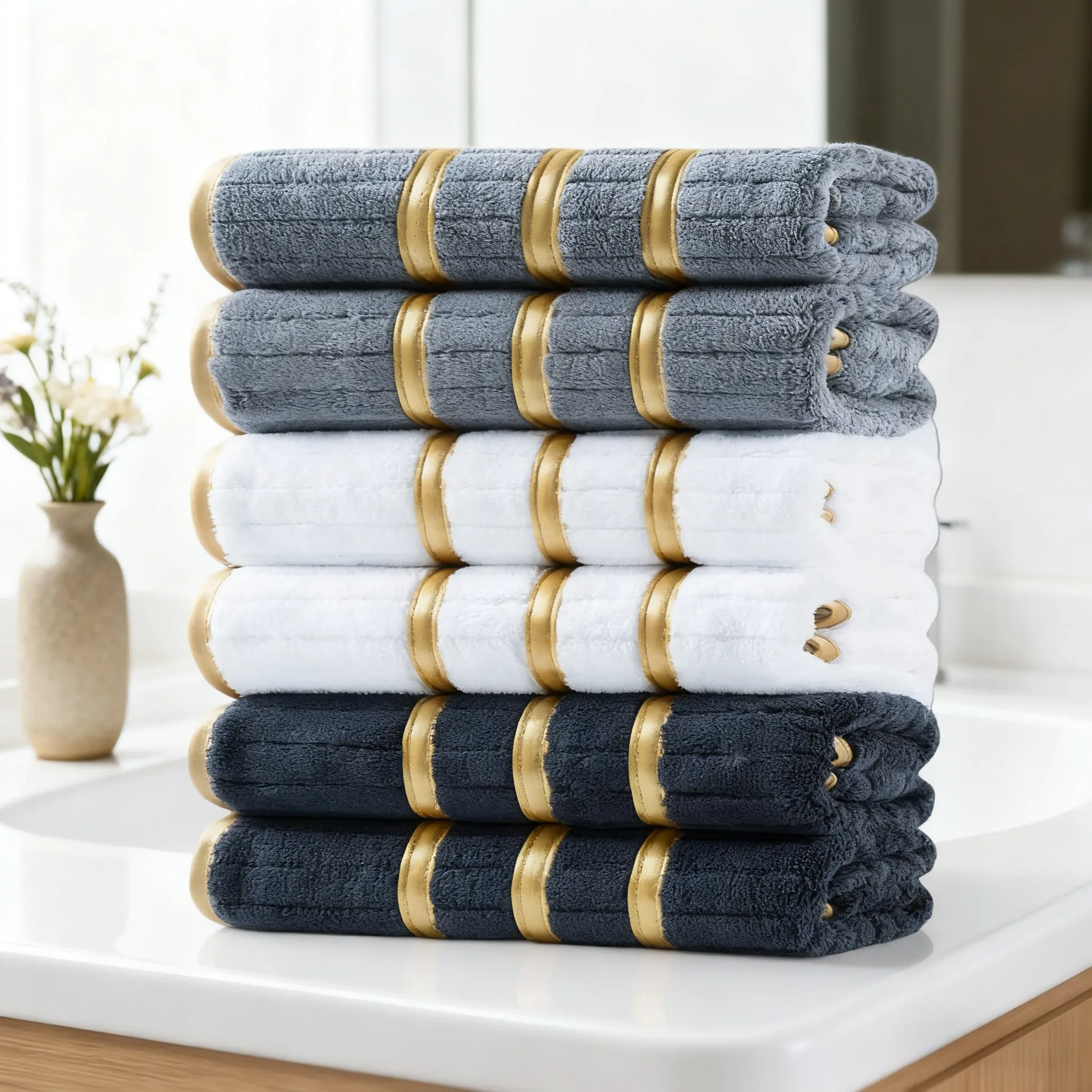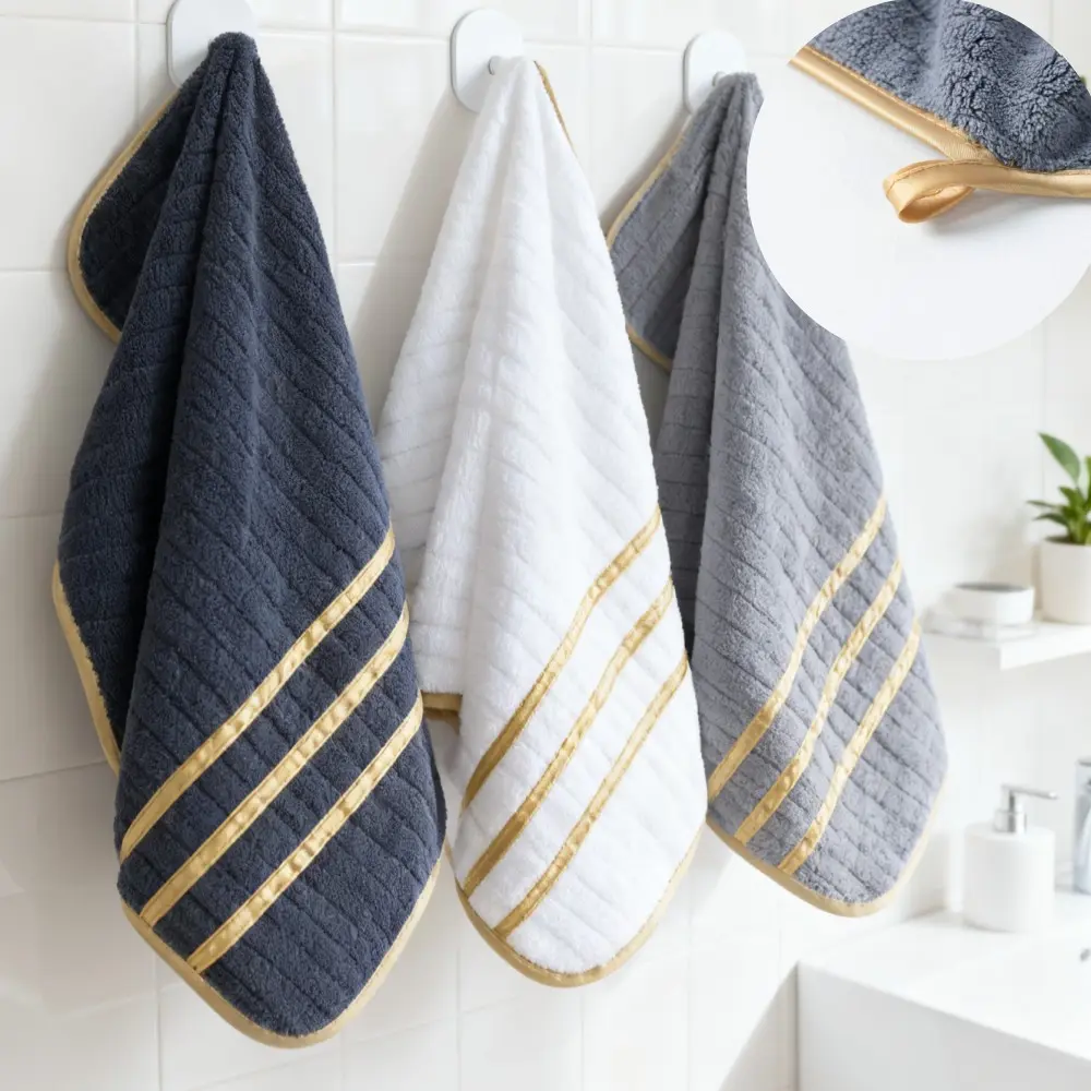 【Soft Comfort】: Made from luxurious striped coral fleece, these towels provide soft and comfortable feel.