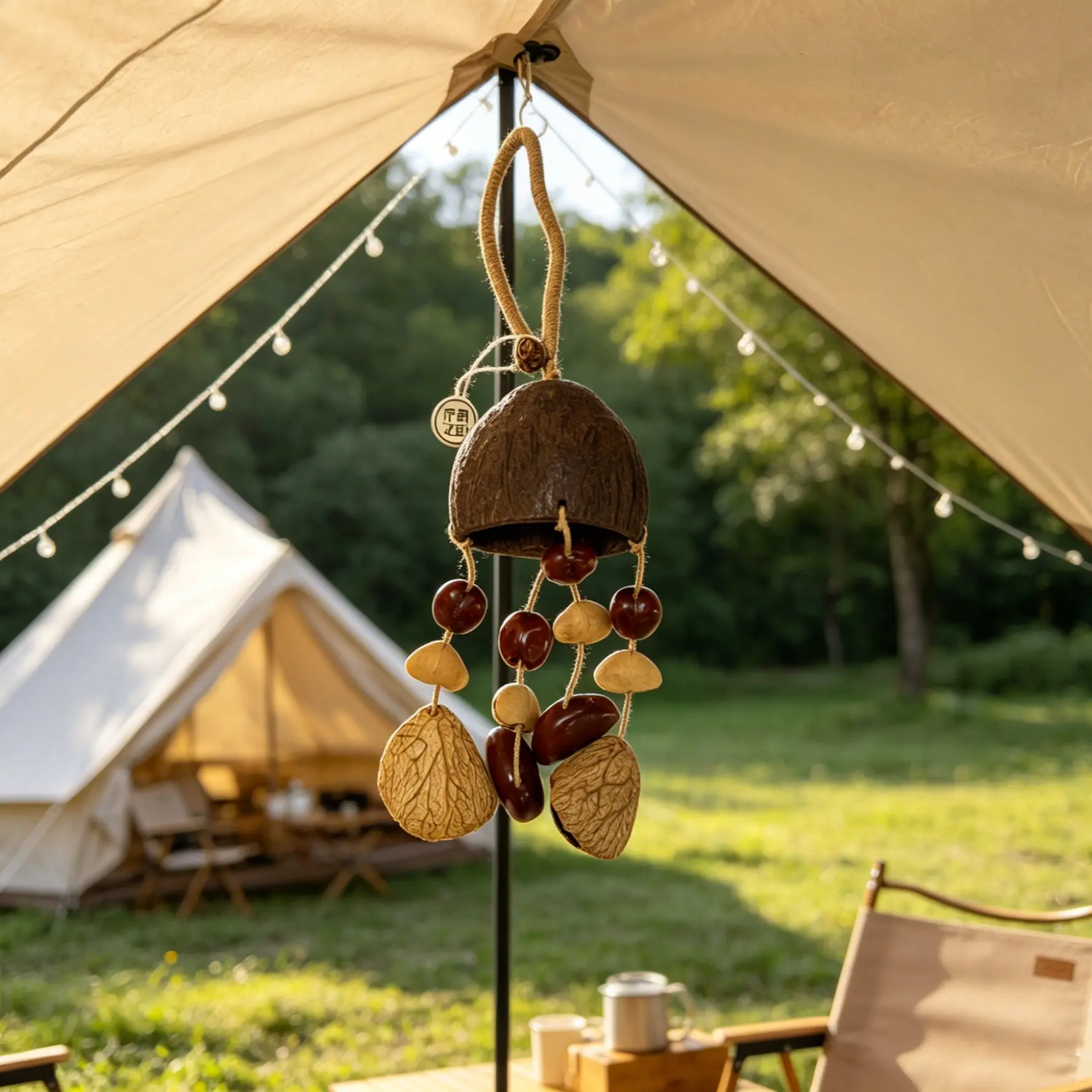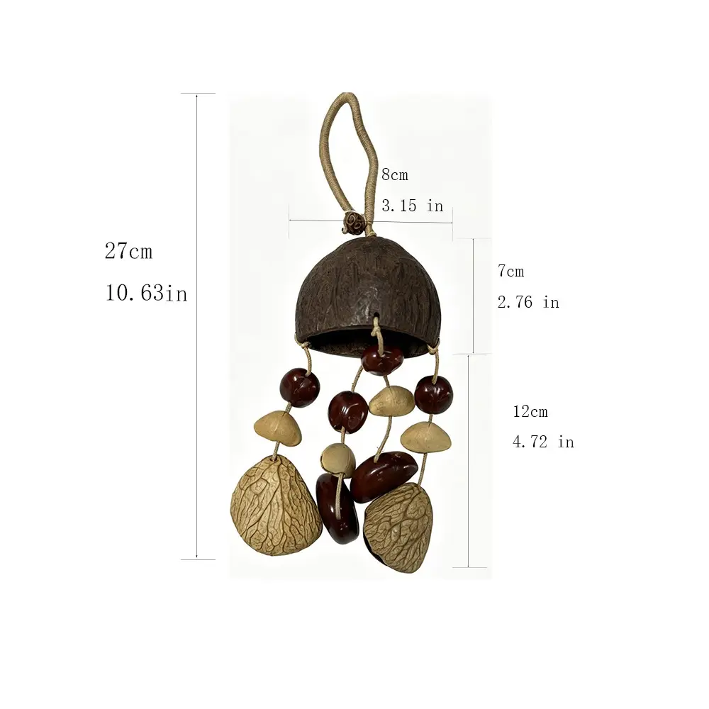 Natural Coconut Shell Seed Wind Chime, Bohemian Handmade Wooden Hanging Decor, Vintage Garden Patio Decoration, Sound Healing Bell
