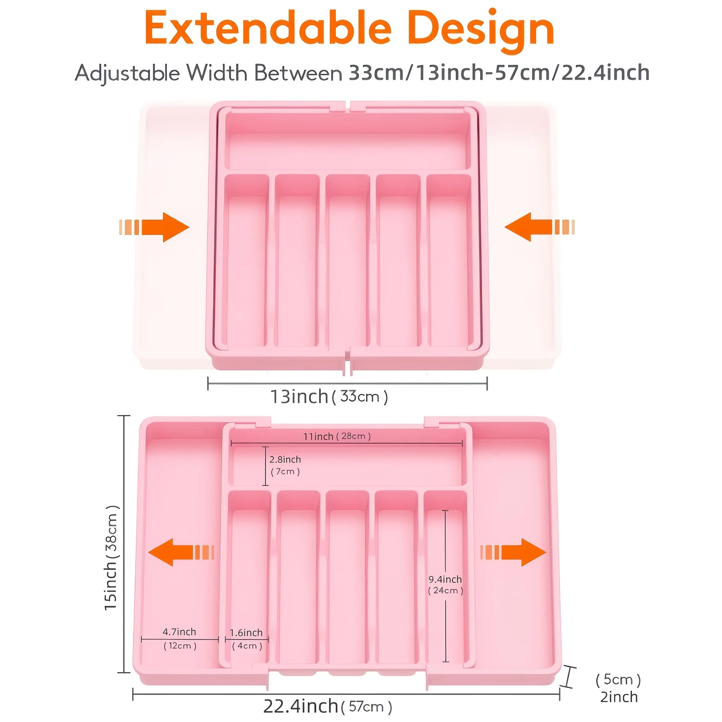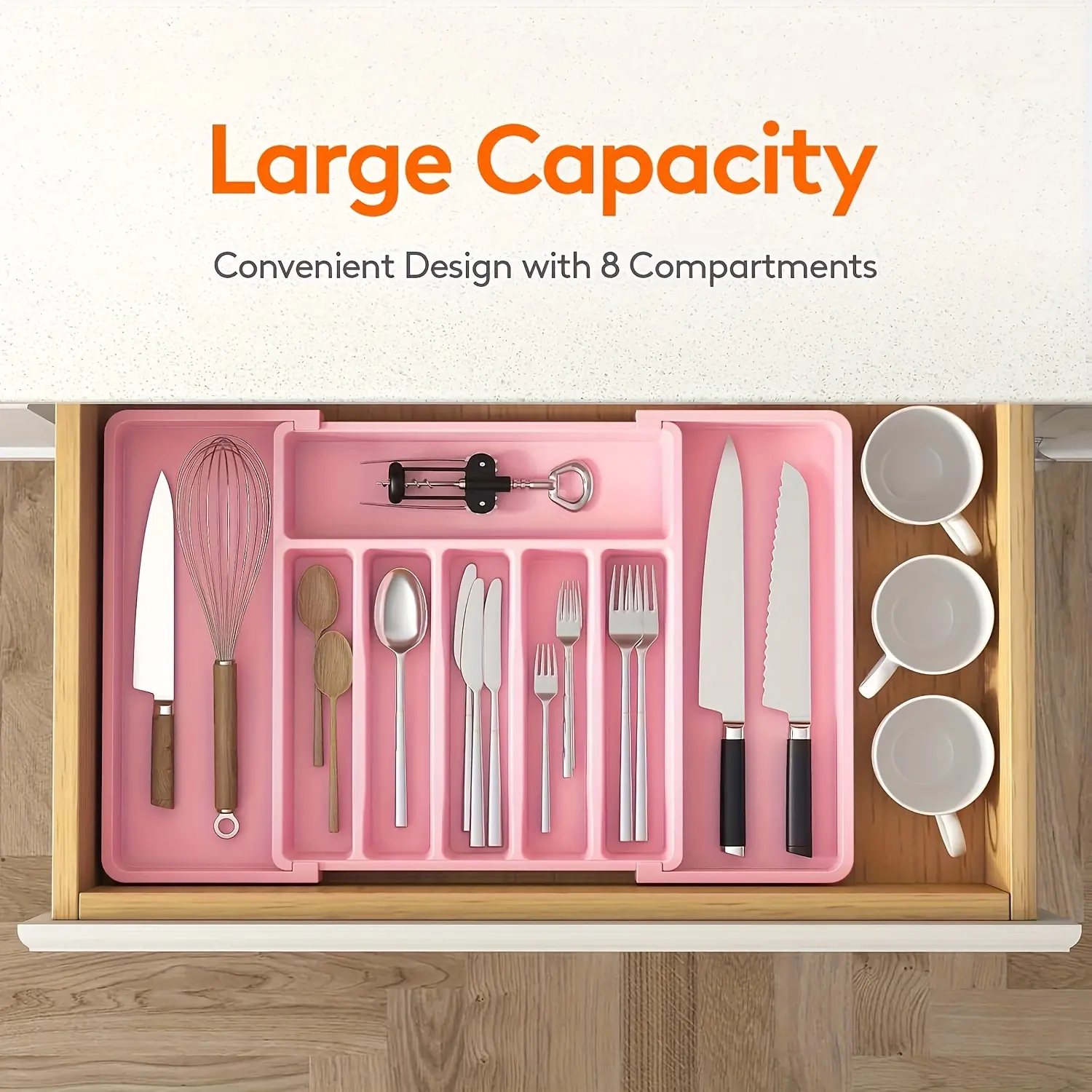 Set of 1/3pcs Silverware Drawer Organizer, Divided Compartments, Expandable Utensil Tray for Kitchen, BPA Free Flatware and Cutlery Holder, Adjustable Plastic Storage for Spoons Forks Knives